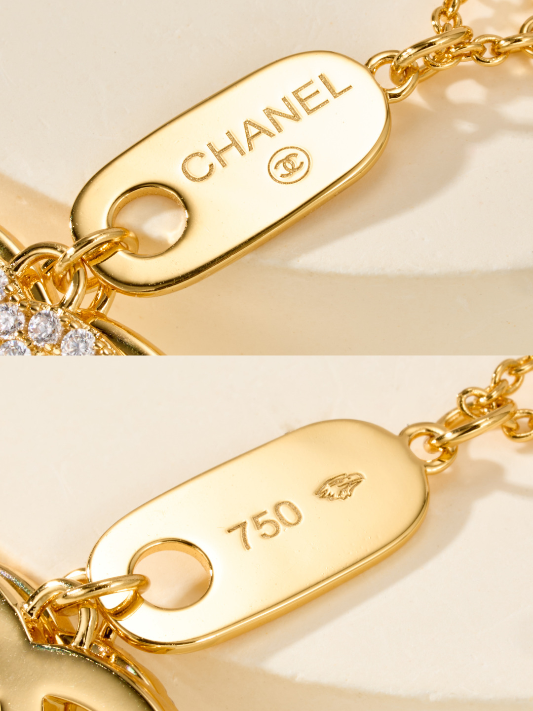 这款首饰是AAAAA 1:1 质量 (非常棒). 使用了和原版一模一样的材料. 商标部分也保持了和香奈儿/Chanel一样. 图片拍摄是实物首饰拍摄, 您所收到的实物保证和我们图片一模一样.