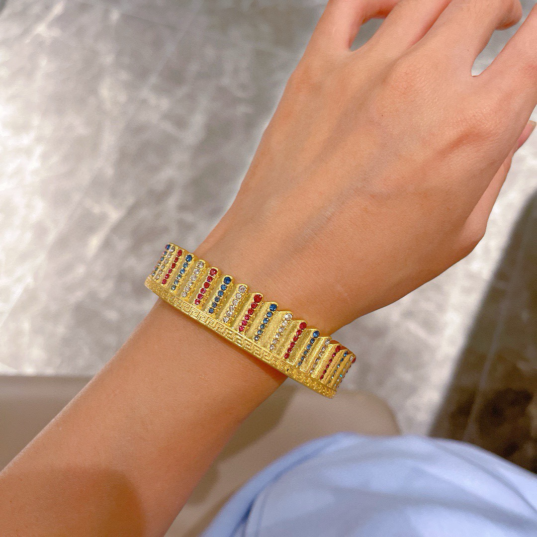 这款首饰是AAAAA 1:1 质量 (非常棒). 使用了和原版一模一样的材料. 商标部分也保持了和范思哲/Versace一样. 图片拍摄是实物首饰拍摄, 您所收到的实物保证和我们图片一模一样.
