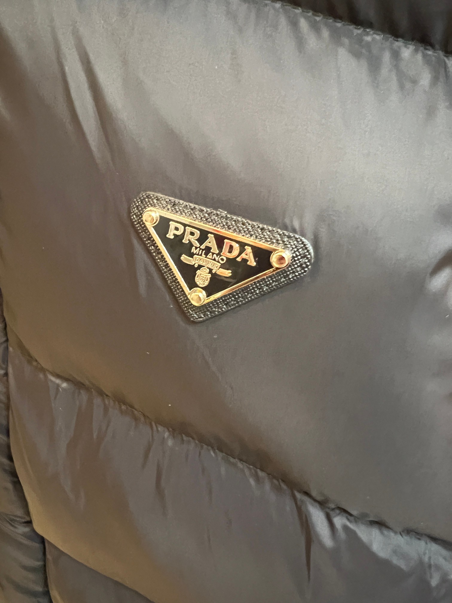 这款衣服是AAAAA 1:1 质量 (非常棒). 使用了和原版一模一样的材料. 商标部分也保持了和普拉达/Prada一样. 图片拍摄是实物衣服拍摄, 您所收到的实物保证和我们图片一模一样.