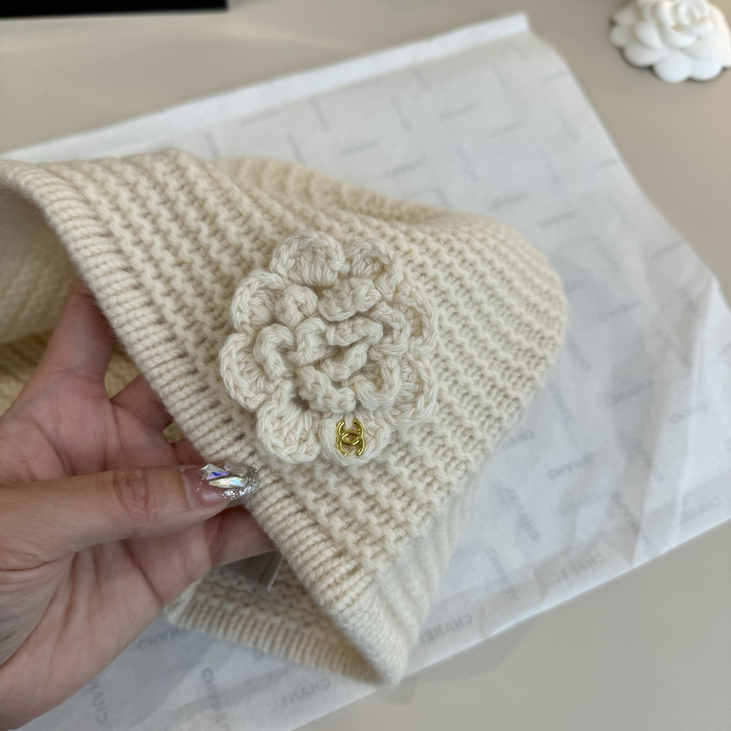 这款帽子是AAAAA 1:1 质量 (非常棒). 使用了和原版一模一样的材料. 商标部分也保持了和香奈儿/Chanel一样. 图片拍摄是实物帽子拍摄, 您所收到的实物保证和我们图片一模一样.