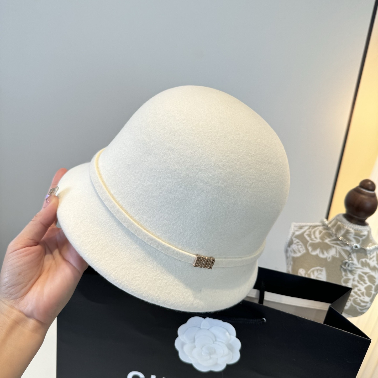 这款帽子是AAAAA 1:1 质量 (非常棒). 使用了和原版一模一样的材料. 商标部分也保持了和迪奥/Dior一样. 图片拍摄是实物帽子拍摄, 您所收到的实物保证和我们图片一模一样.