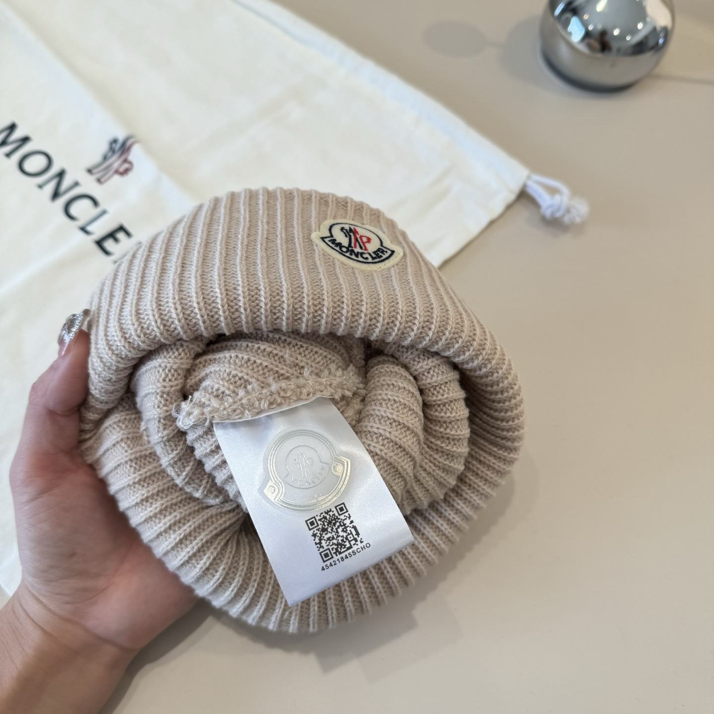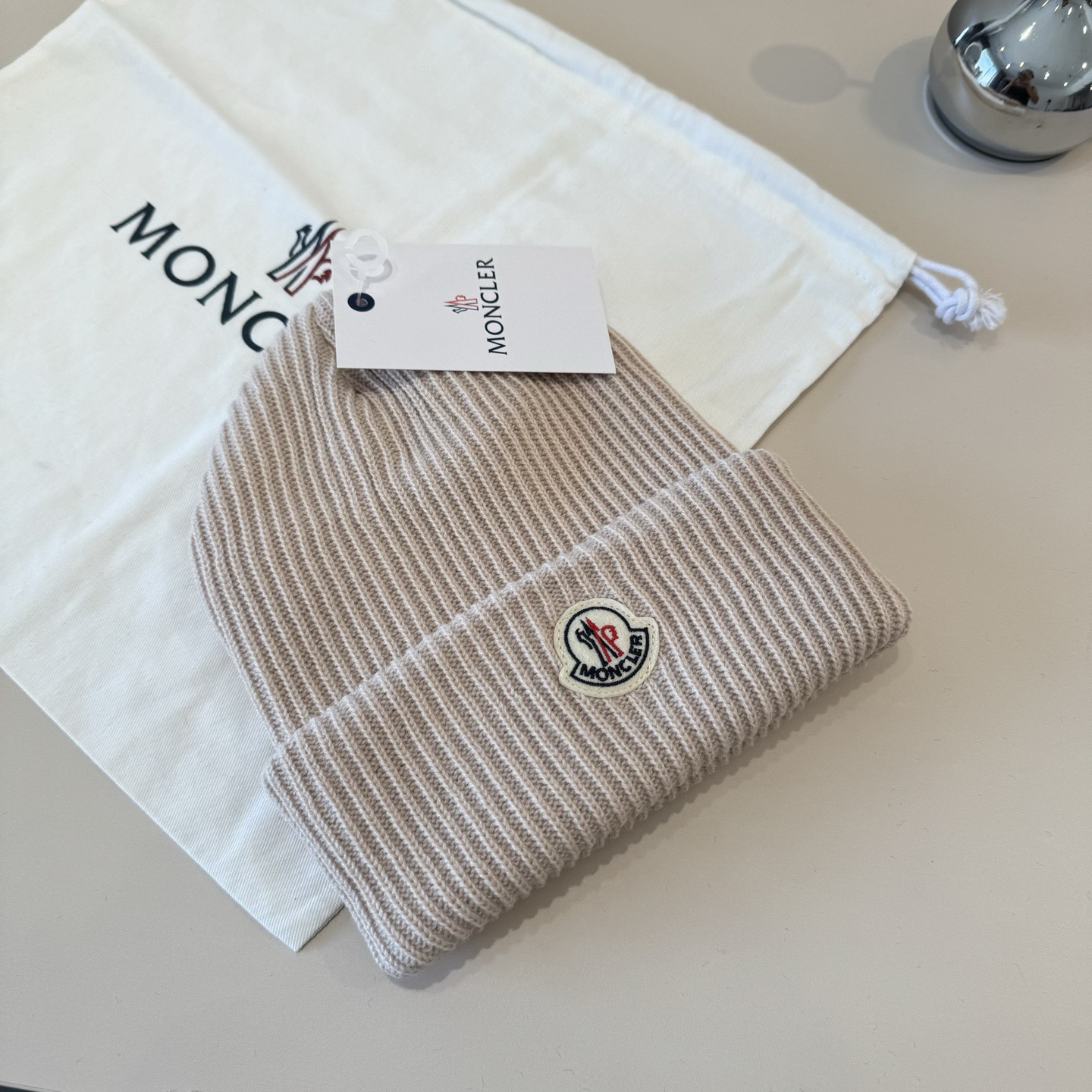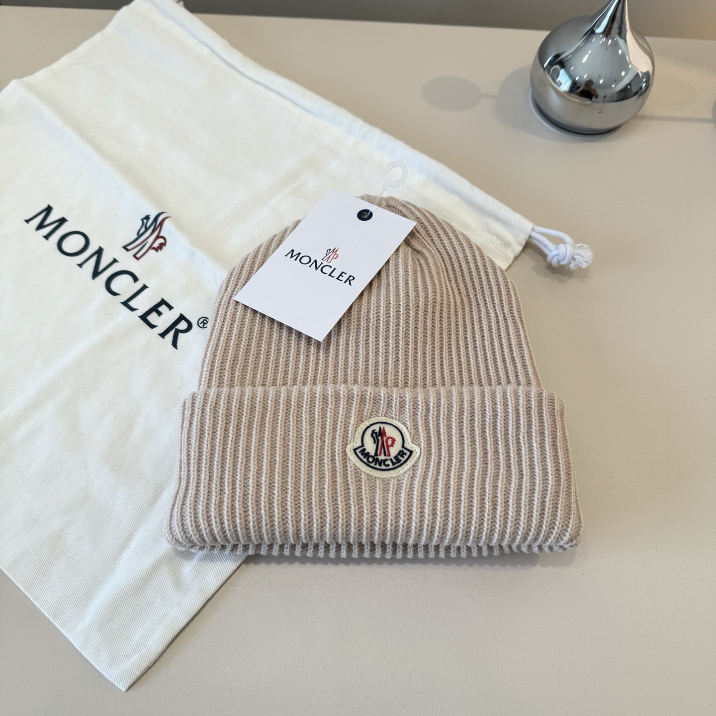 这款帽子是AAAAA 1:1 质量 (非常棒). 使用了和原版一模一样的材料. 商标部分也保持了和盟可睐/moncler一样. 图片拍摄是实物帽子拍摄, 您所收到的实物保证和我们图片一模一样.