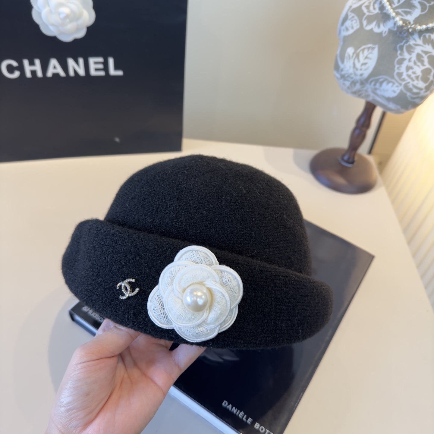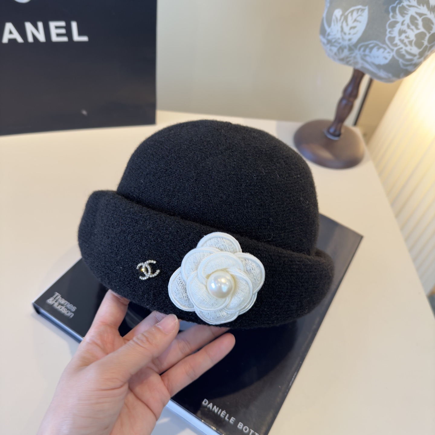 这款帽子是AAAAA 1:1 质量 (非常棒). 使用了和原版一模一样的材料. 商标部分也保持了和香奈儿/Chanel一样. 图片拍摄是实物帽子拍摄, 您所收到的实物保证和我们图片一模一样.