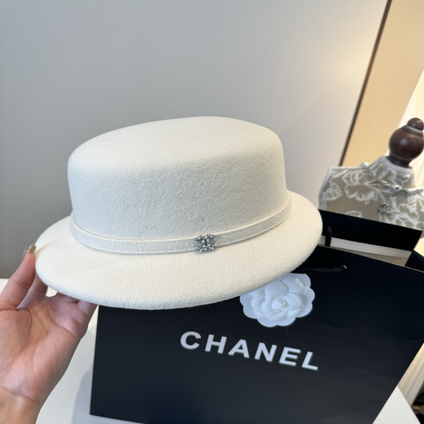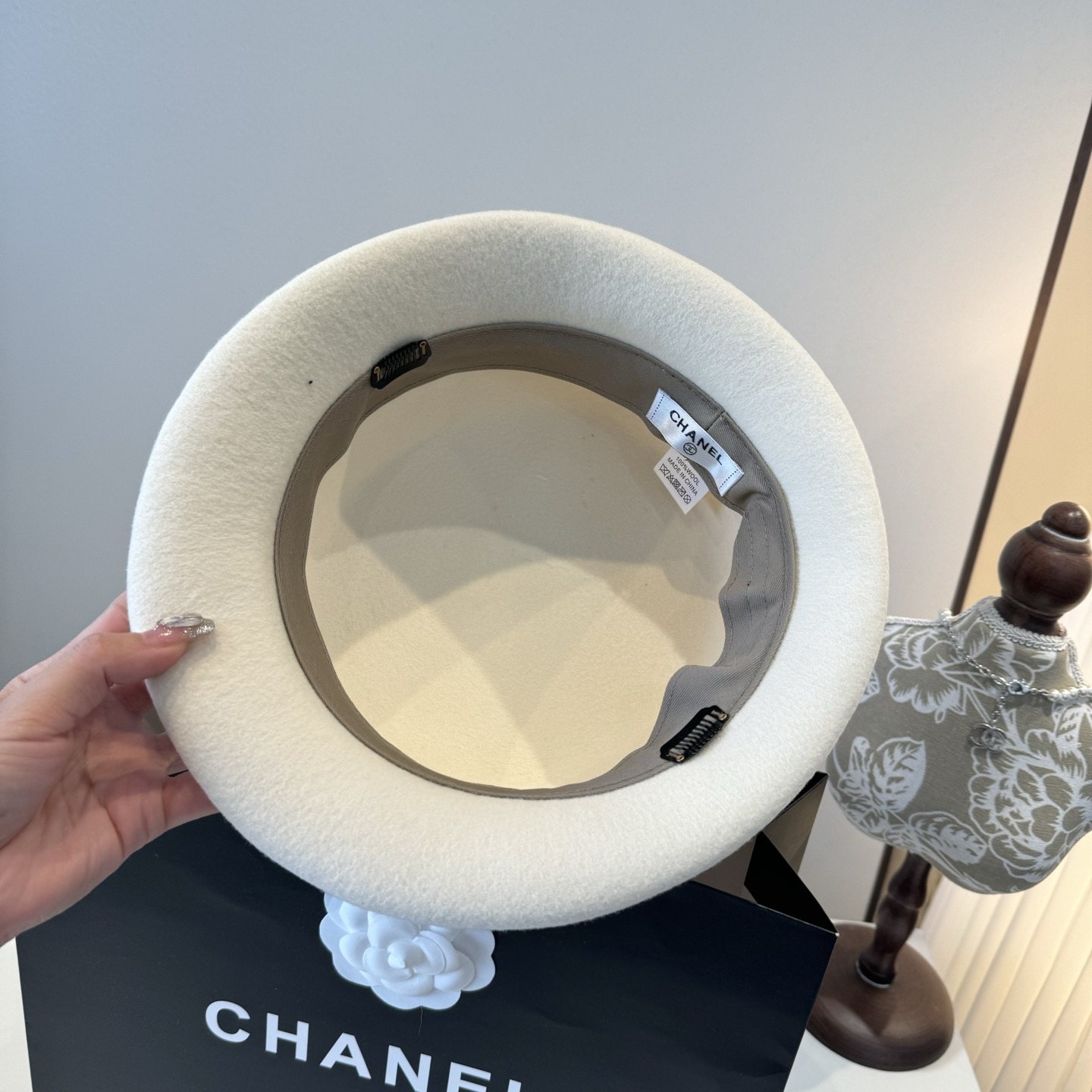 这款帽子是AAAAA 1:1 质量 (非常棒). 使用了和原版一模一样的材料. 商标部分也保持了和香奈儿/Chanel一样. 图片拍摄是实物帽子拍摄, 您所收到的实物保证和我们图片一模一样.
