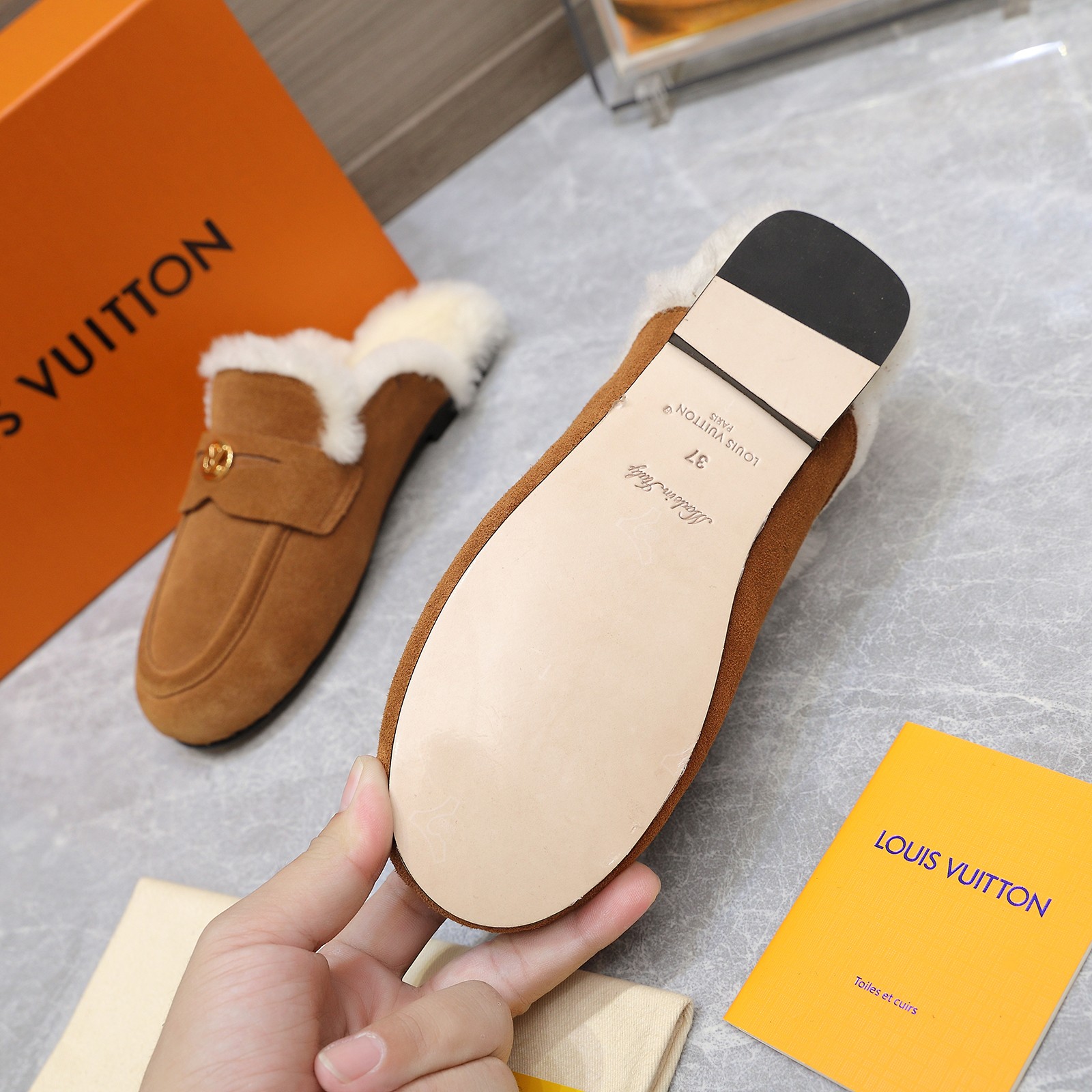 这款鞋子是AAAAA 1:1 质量 (非常棒). 使用了和原版一模一样的材料. 商标部分也保持了和路易威登/Louis Vuitton一样. 图片拍摄是实物鞋子拍摄, 您所收到的实物保证和我们图片一模一样.
