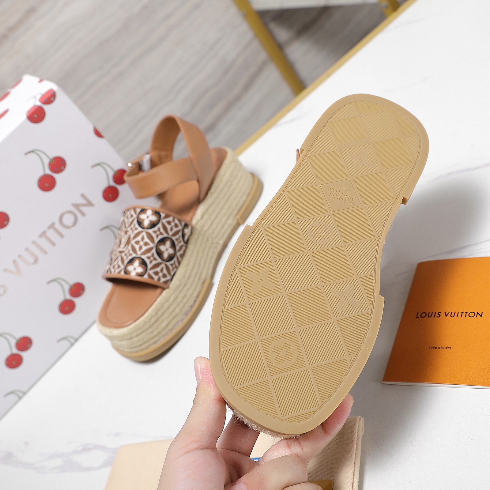 这款鞋子是AAAAA 1:1 质量 (非常棒). 使用了和原版一模一样的材料. 商标部分也保持了和路易威登/Louis Vuitton一样. 图片拍摄是实物鞋子拍摄, 您所收到的实物保证和我们图片一模一样.