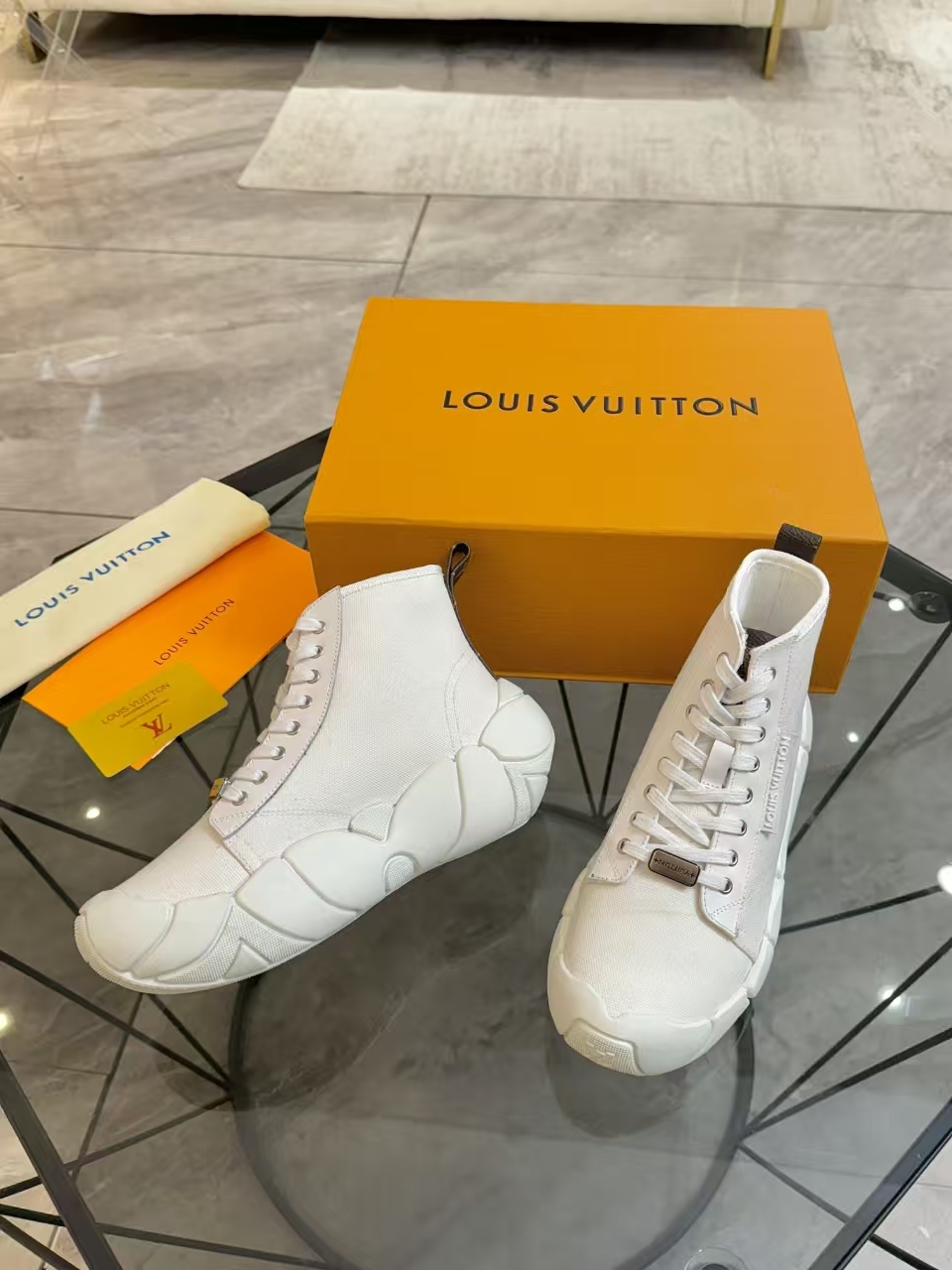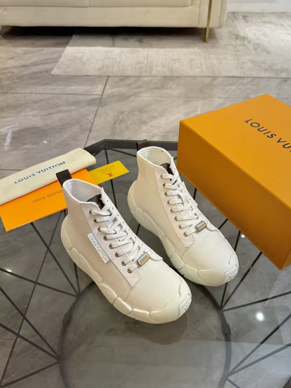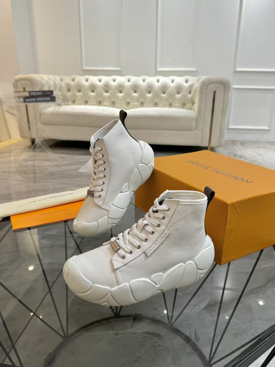 这款鞋子是AAAAA 1:1 质量 (非常棒). 使用了和原版一模一样的材料. 商标部分也保持了和路易威登/Louis Vuitton一样. 图片拍摄是实物鞋子拍摄, 您所收到的实物保证和我们图片一模一样.