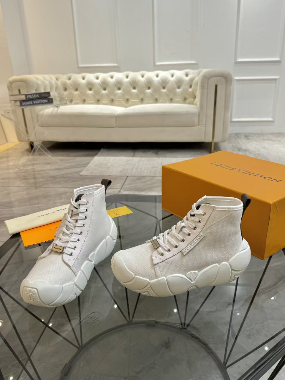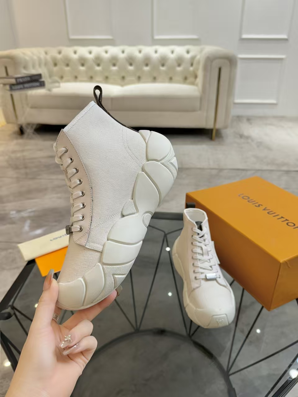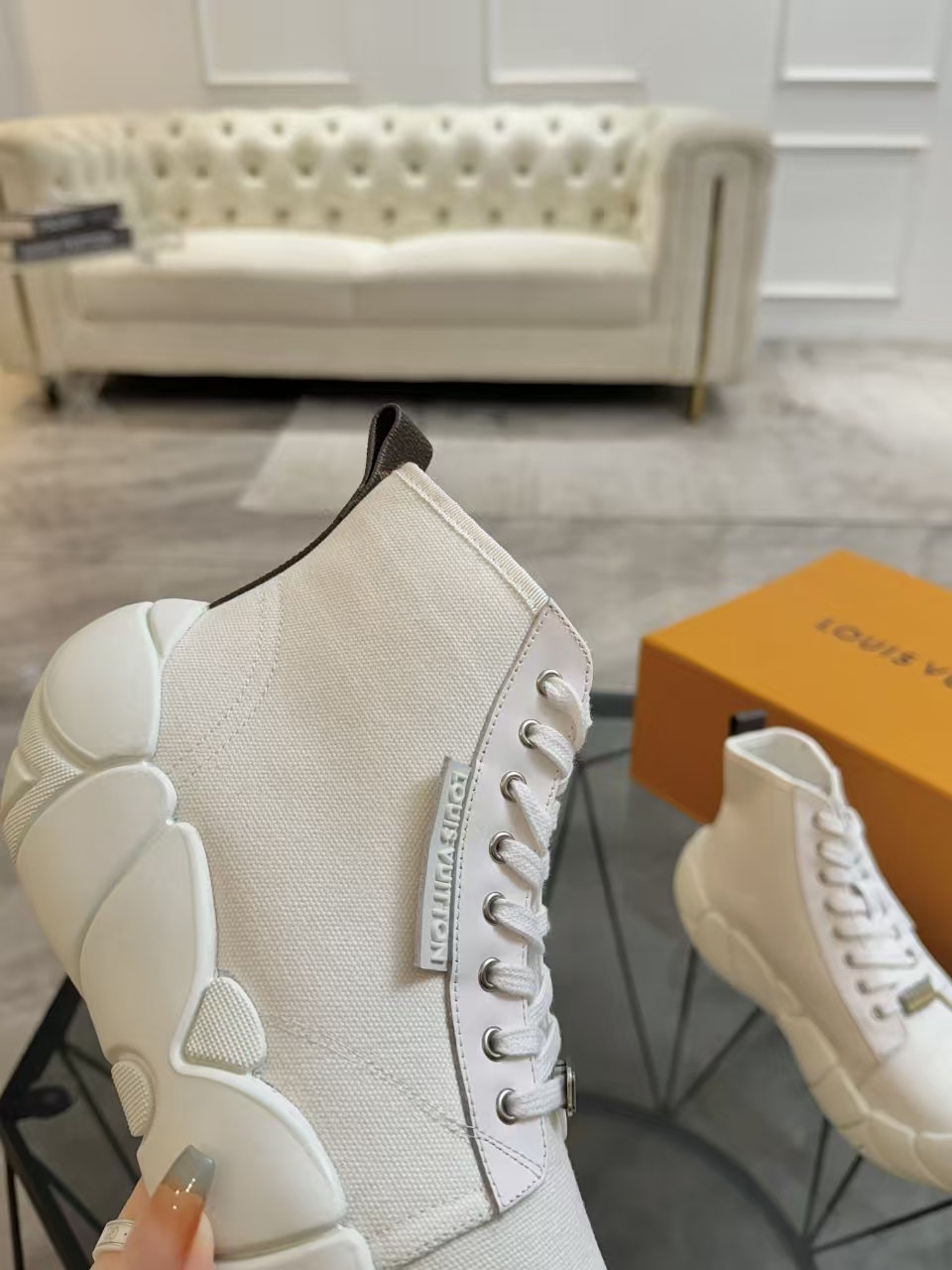 这款鞋子是AAAAA 1:1 质量 (非常棒). 使用了和原版一模一样的材料. 商标部分也保持了和路易威登/Louis Vuitton一样. 图片拍摄是实物鞋子拍摄, 您所收到的实物保证和我们图片一模一样.