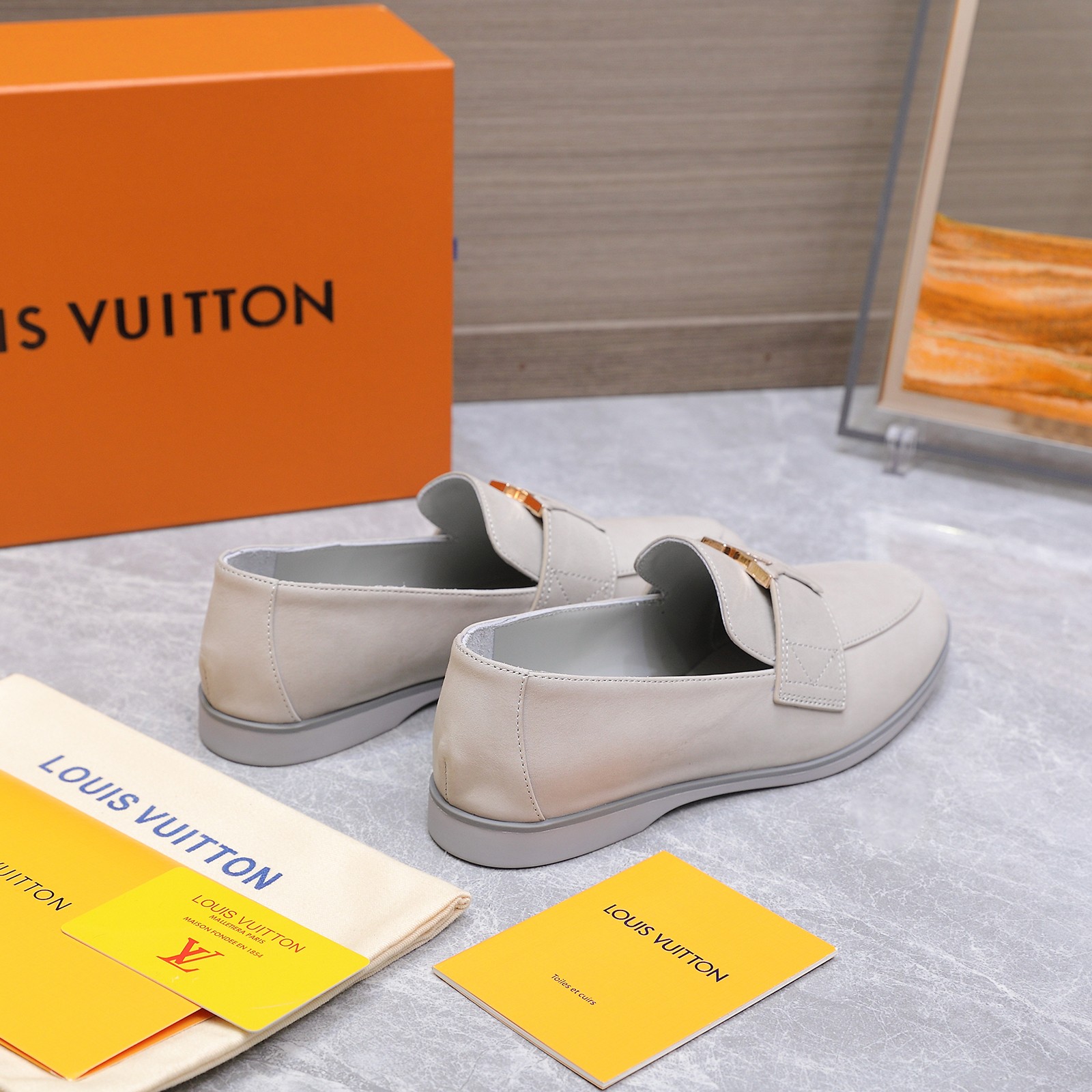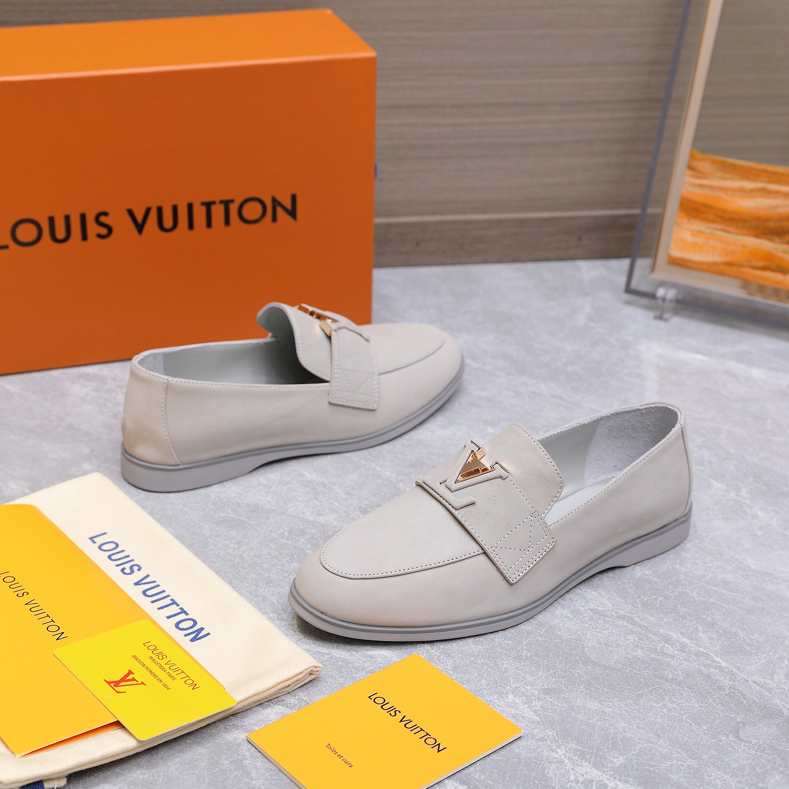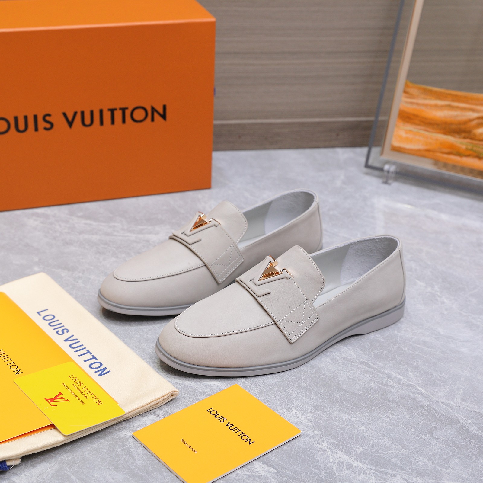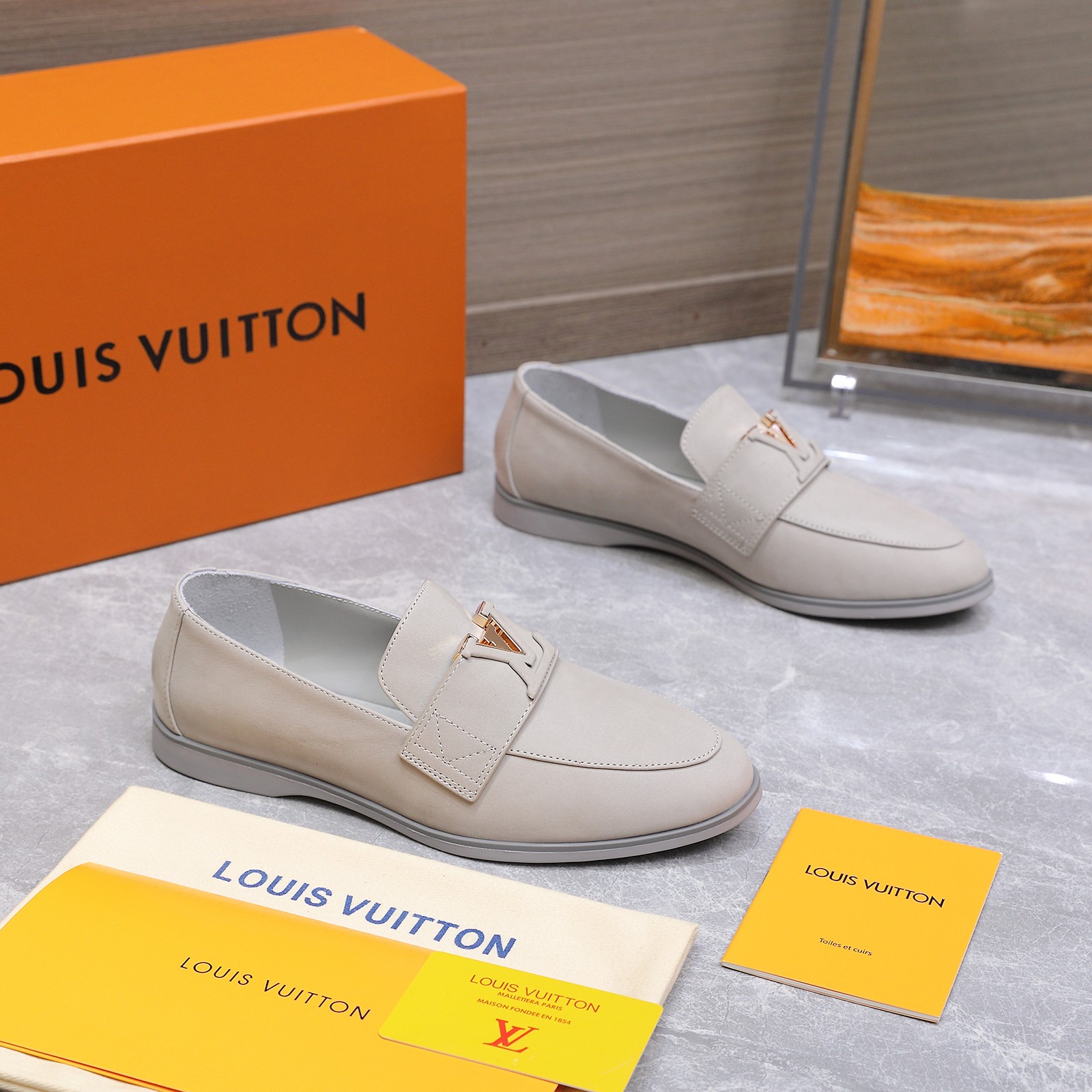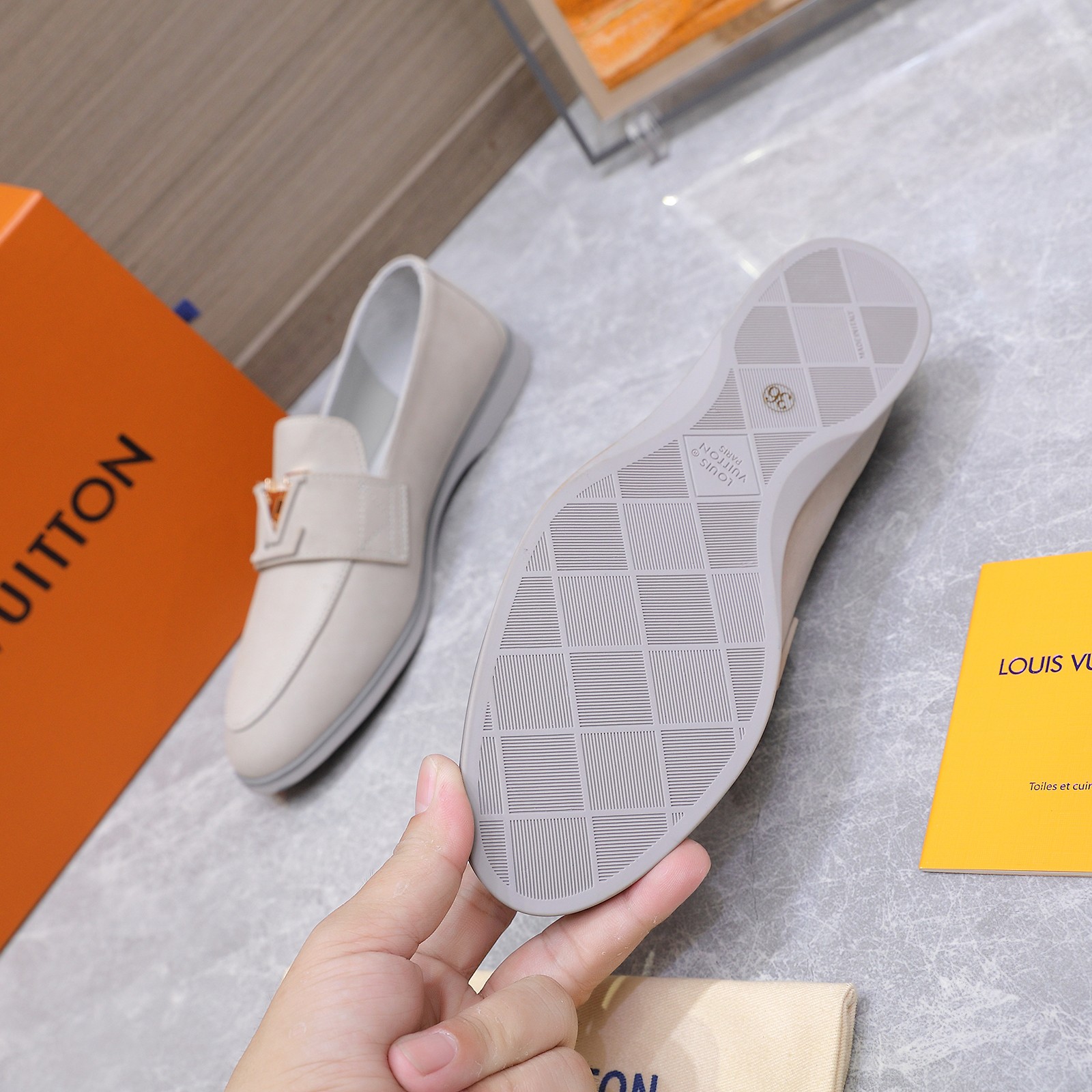 这款鞋子是AAAAA 1:1 质量 (非常棒). 使用了和原版一模一样的材料. 商标部分也保持了和路易威登/Louis Vuitton一样. 图片拍摄是实物鞋子拍摄, 您所收到的实物保证和我们图片一模一样.