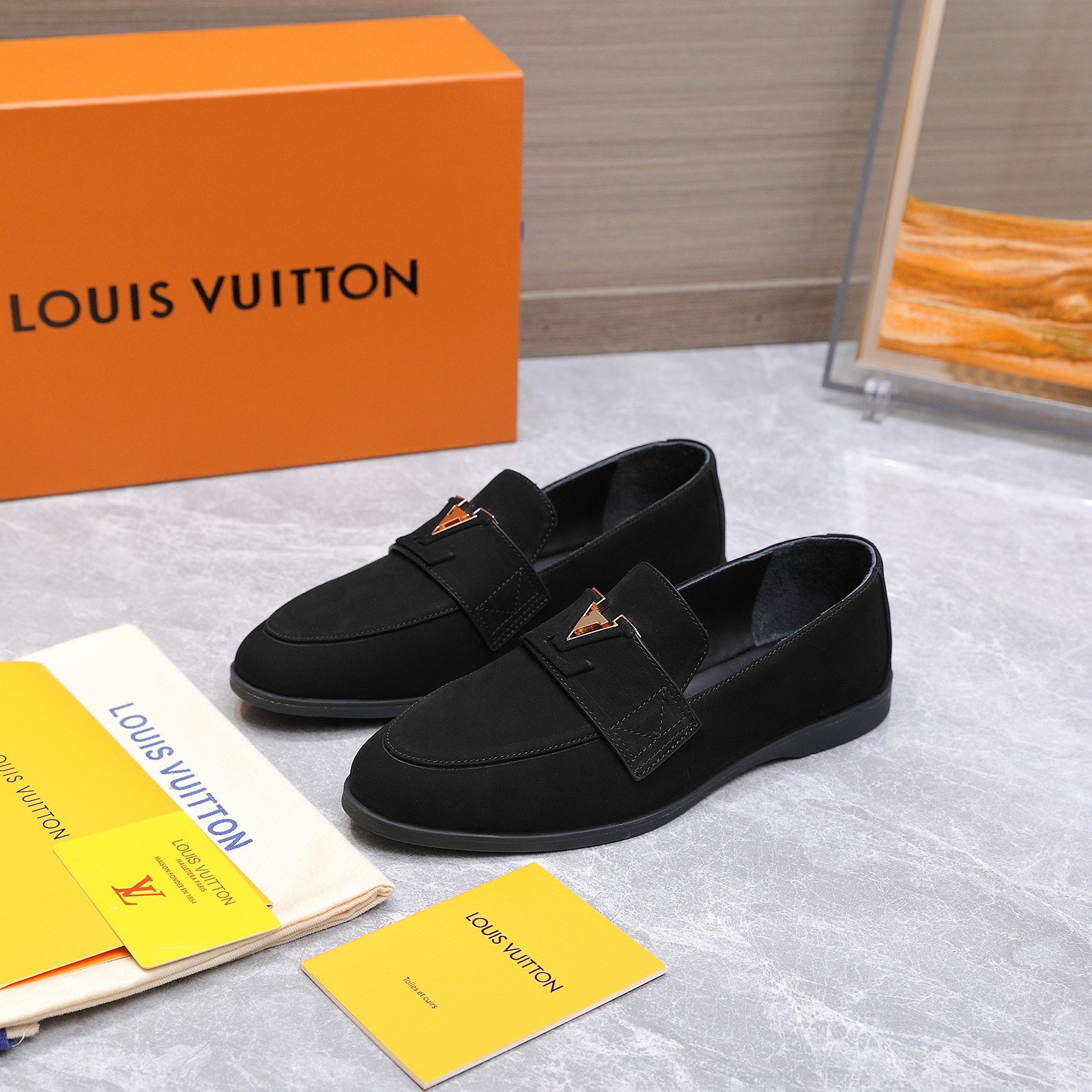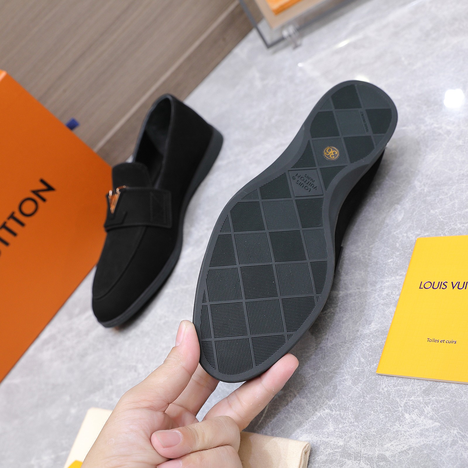 这款鞋子是AAAAA 1:1 质量 (非常棒). 使用了和原版一模一样的材料. 商标部分也保持了和路易威登/Louis Vuitton一样. 图片拍摄是实物鞋子拍摄, 您所收到的实物保证和我们图片一模一样.