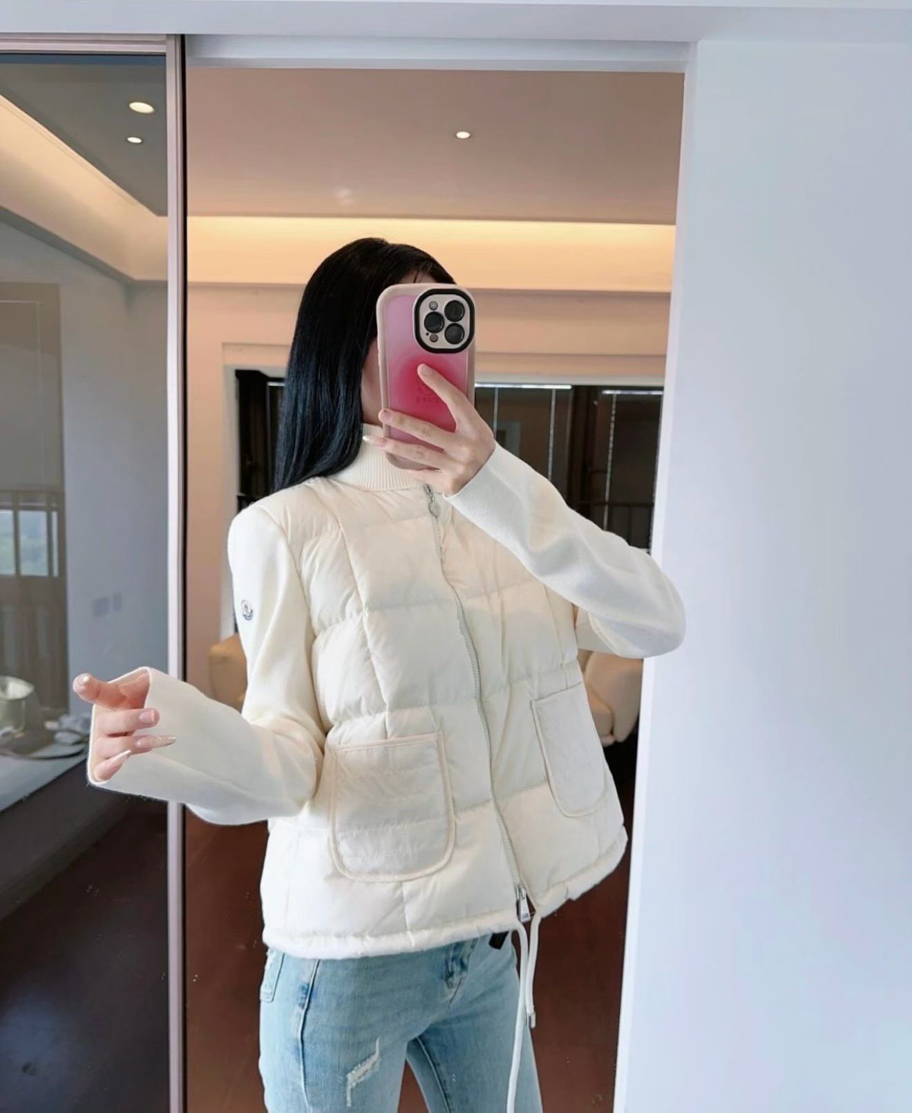 这款衣服是AAAAA 1:1 质量 (非常棒). 使用了和原版一模一样的材料. 商标部分也保持了和盟可睐/moncler一样. 图片拍摄是实物衣服拍摄, 您所收到的实物保证和我们图片一模一样.