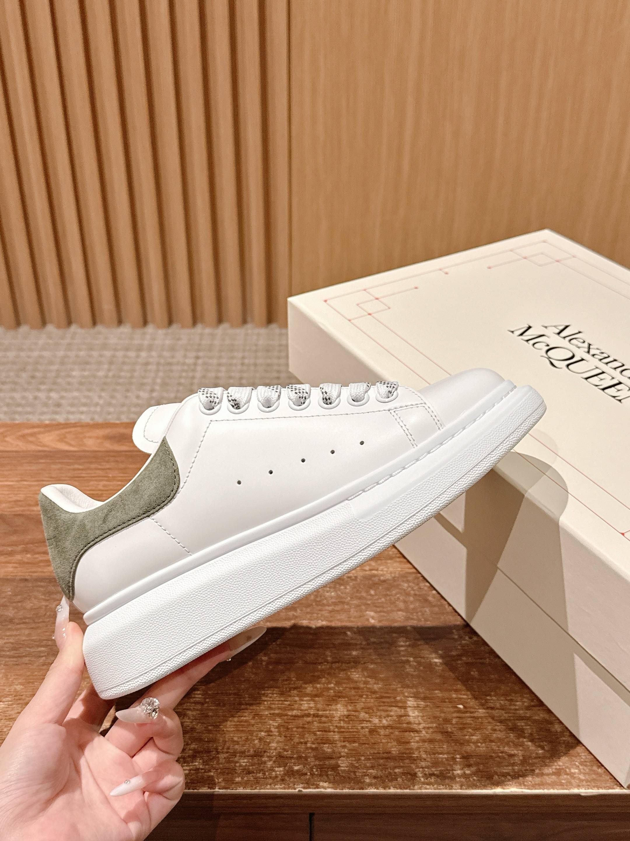 这款鞋子是AAAAA 1:1 质量 (非常棒). 使用了和原版一模一样的材料. 商标部分也保持了和亚历山大·麦昆/McQueen一样. 图片拍摄是实物鞋子拍摄, 您所收到的实物保证和我们图片一模一样.