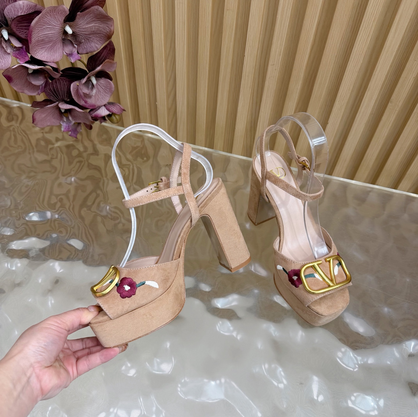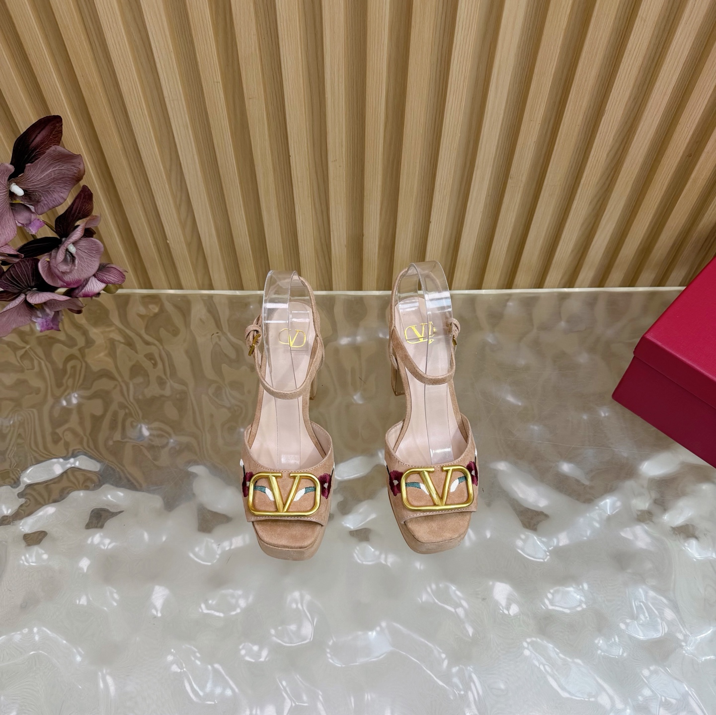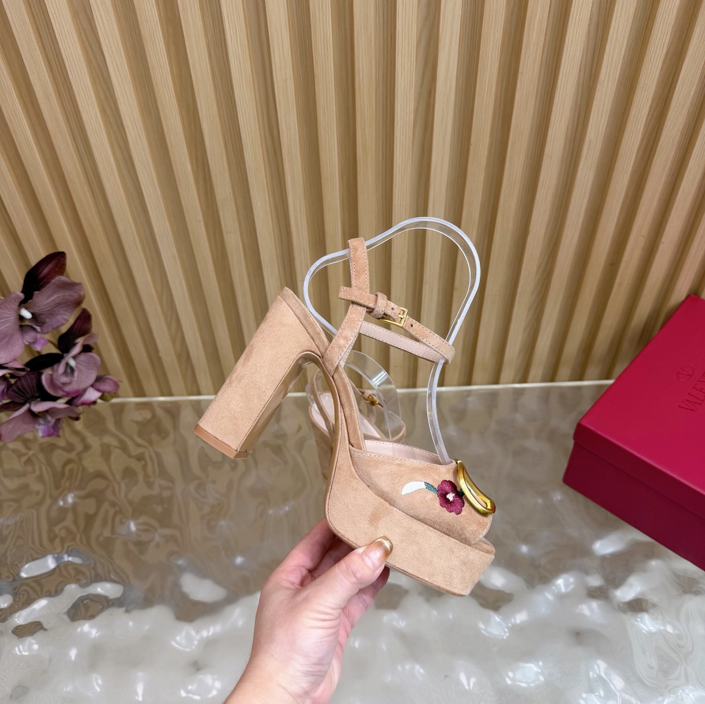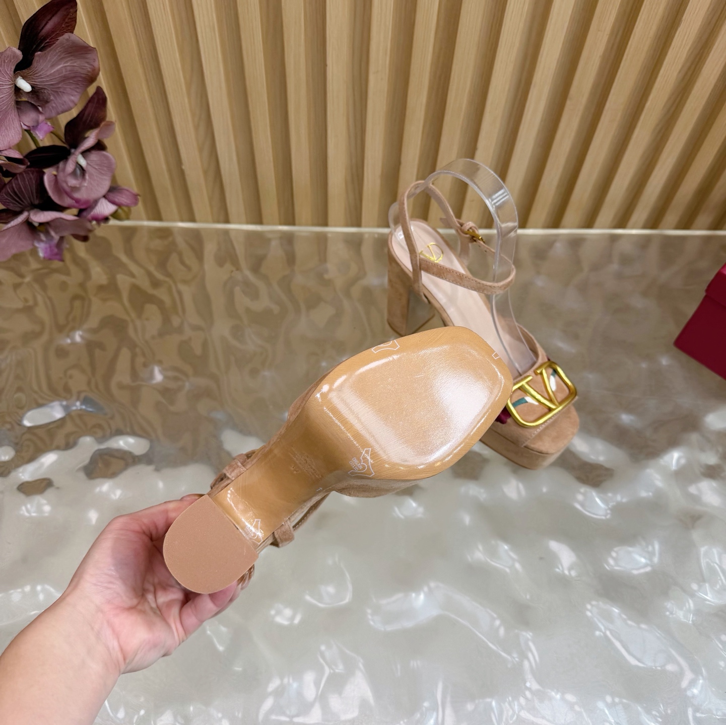 这款鞋子是AAAAA 1:1 质量 (非常棒). 使用了和原版一模一样的材料. 商标部分也保持了和华伦天奴/Valentino一样. 图片拍摄是实物鞋子拍摄, 您所收到的实物保证和我们图片一模一样.