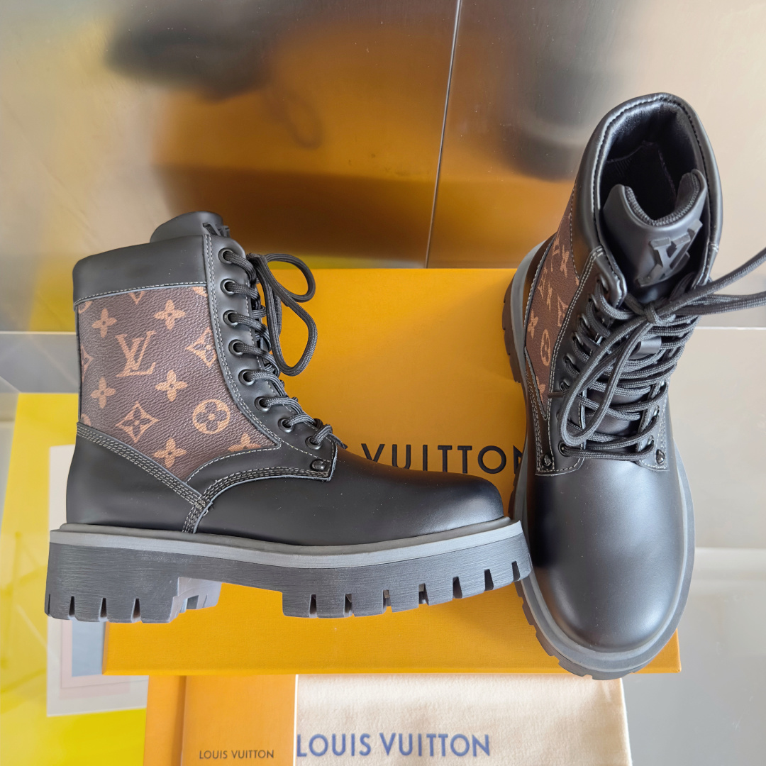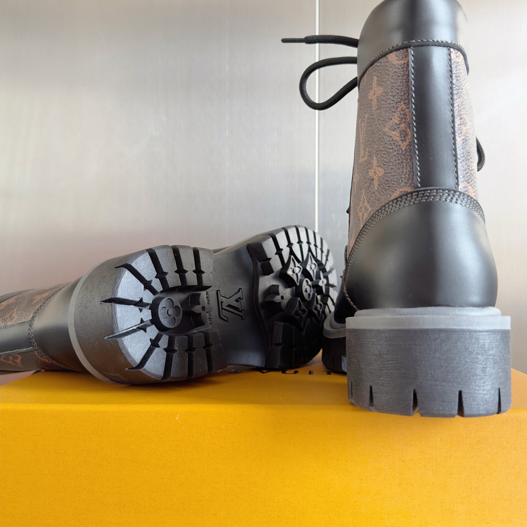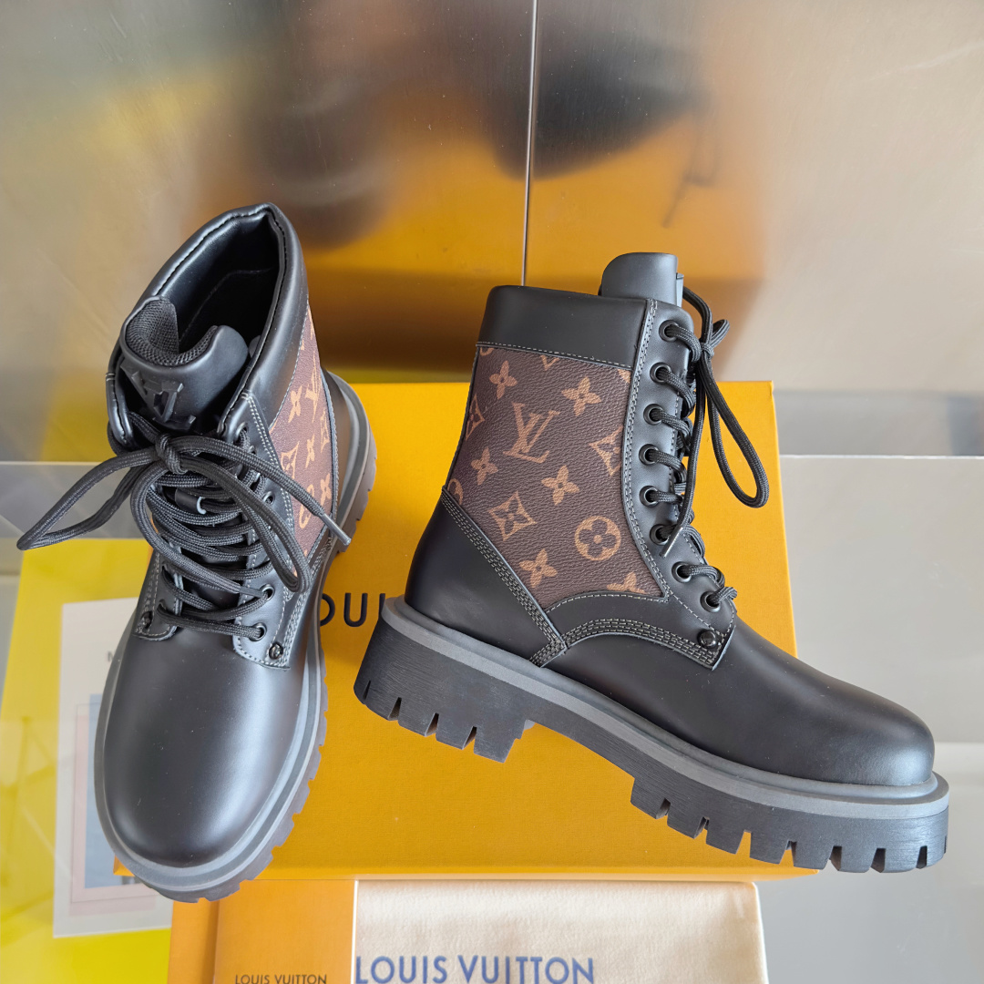 这款鞋子是AAAAA 1:1 质量 (非常棒). 使用了和原版一模一样的材料. 商标部分也保持了和路易威登/Louis Vuitton一样. 图片拍摄是实物鞋子拍摄, 您所收到的实物保证和我们图片一模一样.