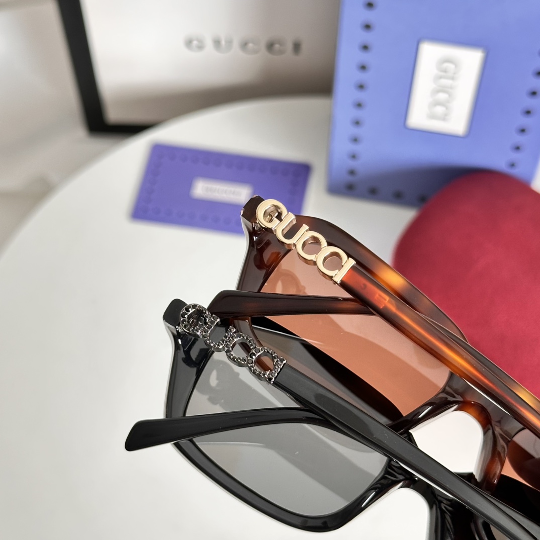 这款太阳眼镜是AAAAA 1:1 质量 (非常棒). 使用了和原版一模一样的材料. 商标部分也保持了和古奇/Gucci一样. 图片拍摄是实物太阳眼镜拍摄, 您所收到的实物保证和我们图片一模一样.
