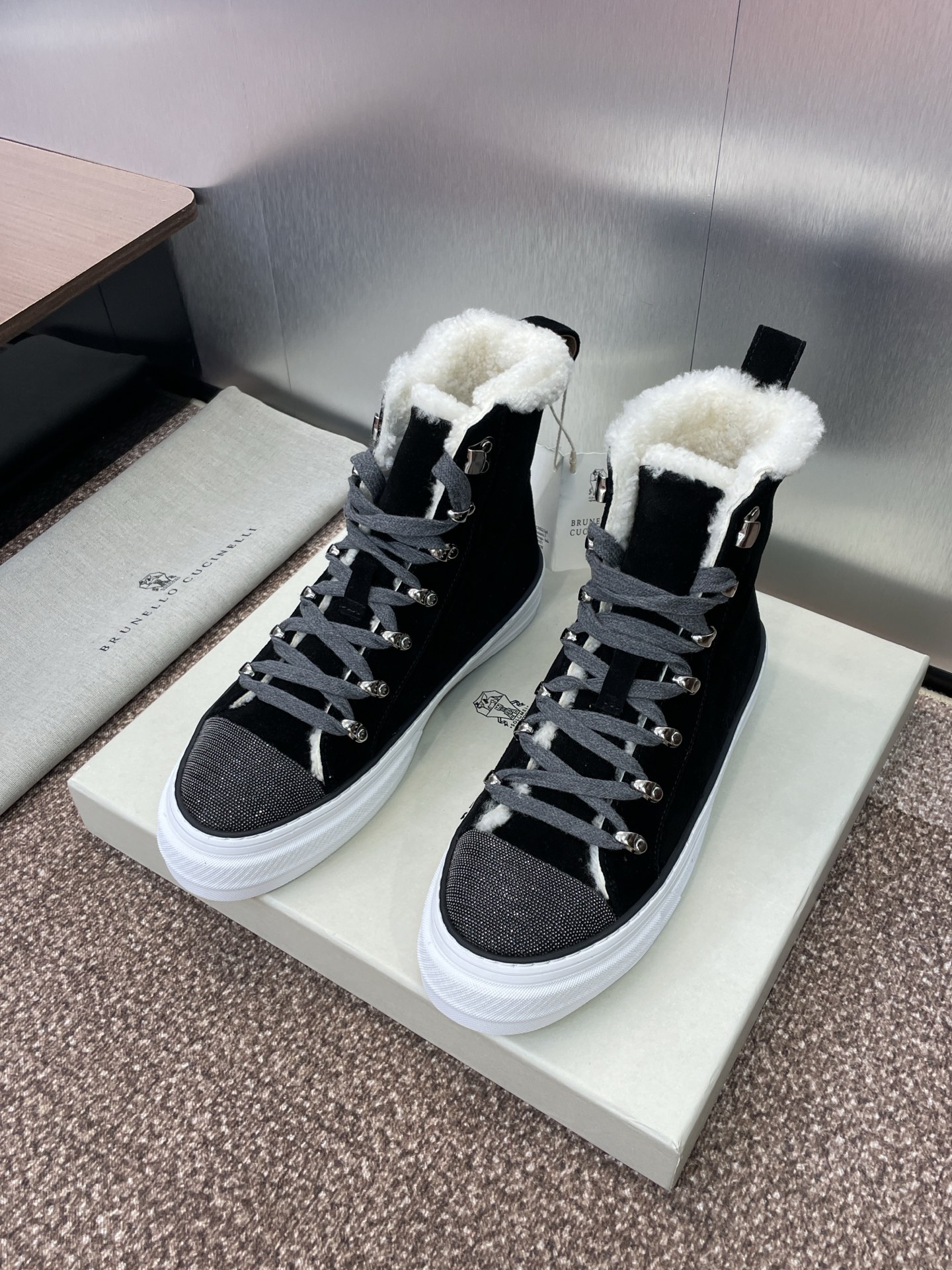 这款鞋子是AAAAA 1:1 质量 (非常棒). 使用了和原版一模一样的材料. 商标部分也保持了和Brunello Cucinelli一样. 图片拍摄是实物鞋子拍摄, 您所收到的实物保证和我们图片一模一样.