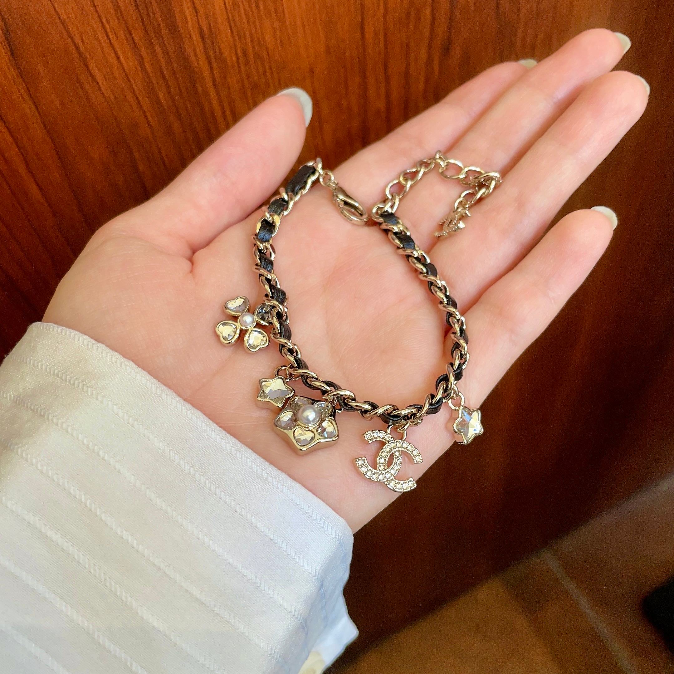 这款首饰是AAAAA 1:1 质量 (非常棒). 使用了和原版一模一样的材料. 商标部分也保持了和香奈儿/Chanel一样. 图片拍摄是实物首饰拍摄, 您所收到的实物保证和我们图片一模一样.