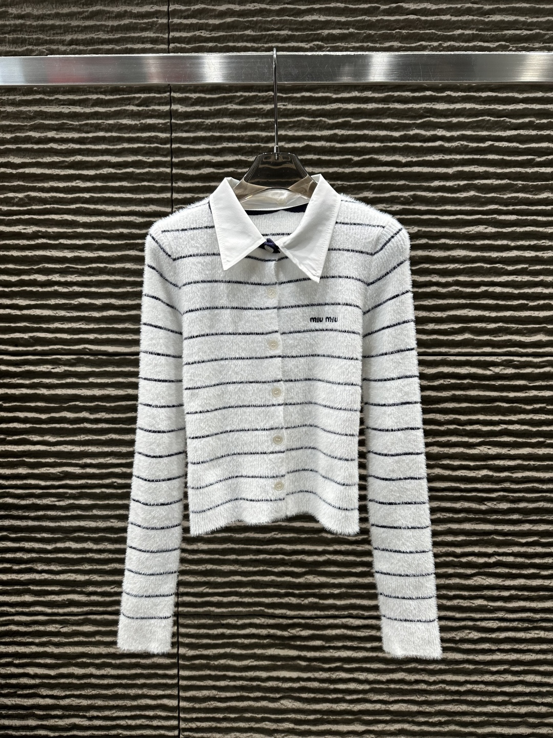这款衣服是AAAAA 1:1 质量 (非常棒). 使用了和原版一模一样的材料. 商标部分也保持了和缪缪/Miu Miu一样. 图片拍摄是实物衣服拍摄, 您所收到的实物保证和我们图片一模一样.