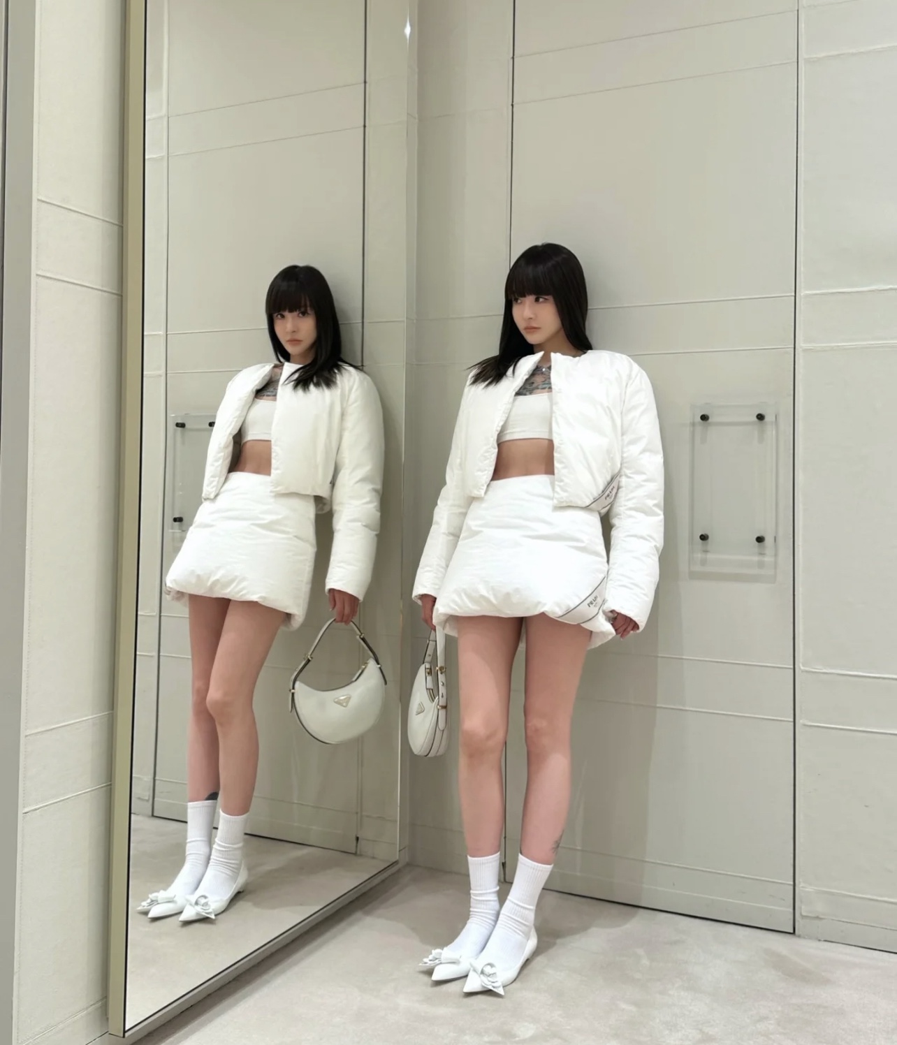 这款衣服是AAAAA 1:1 质量 (非常棒). 使用了和原版一模一样的材料. 商标部分也保持了和普拉达/Prada一样. 图片拍摄是实物衣服拍摄, 您所收到的实物保证和我们图片一模一样.