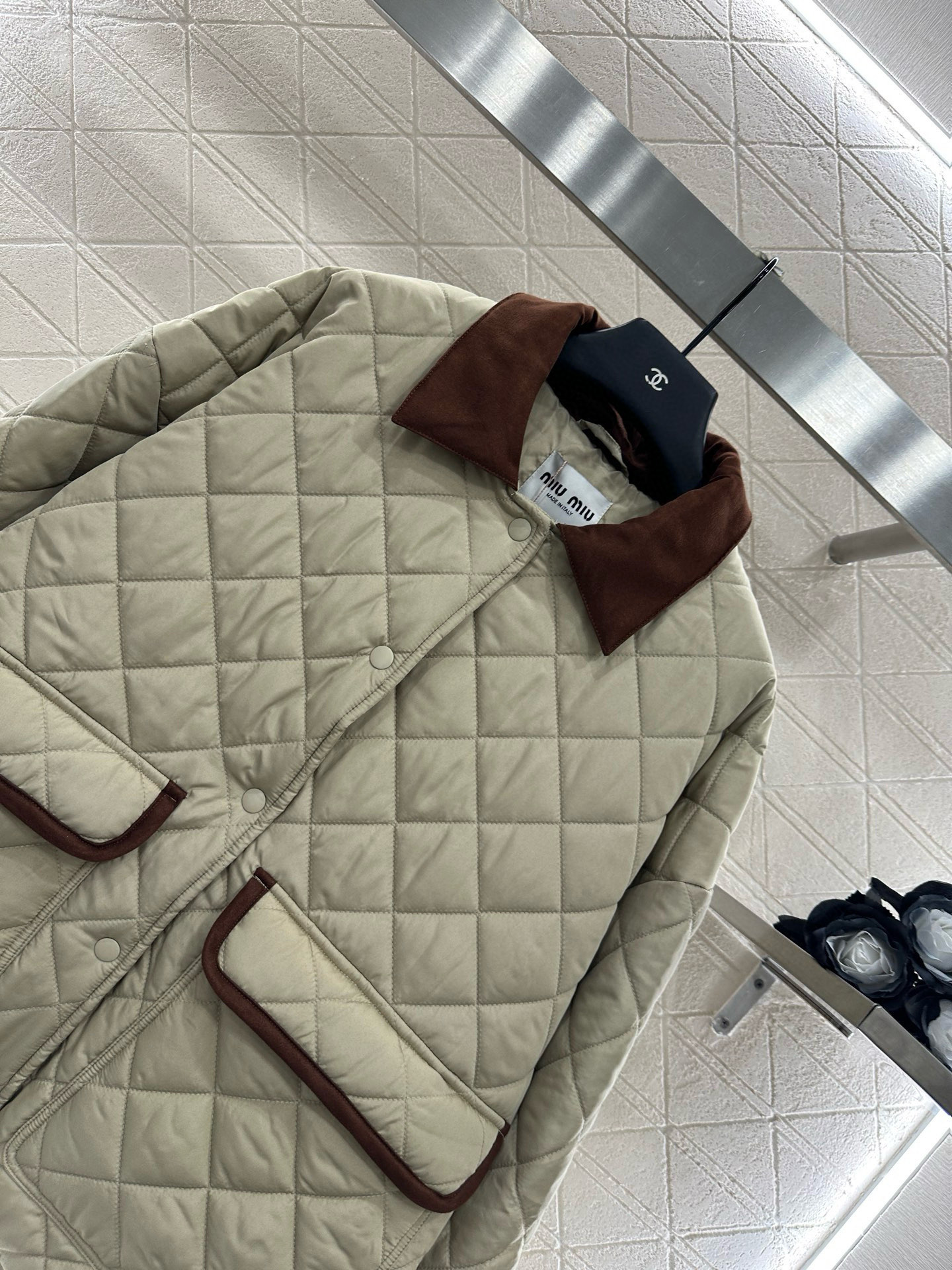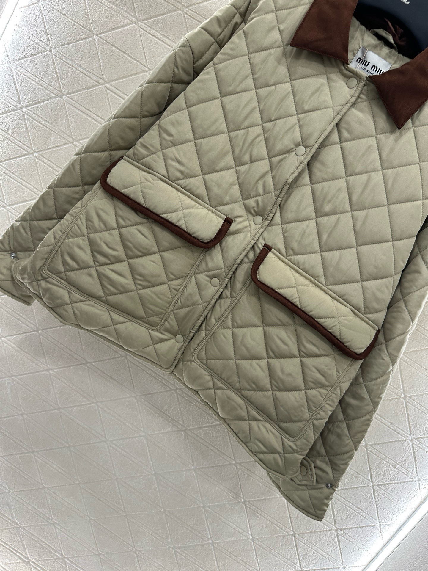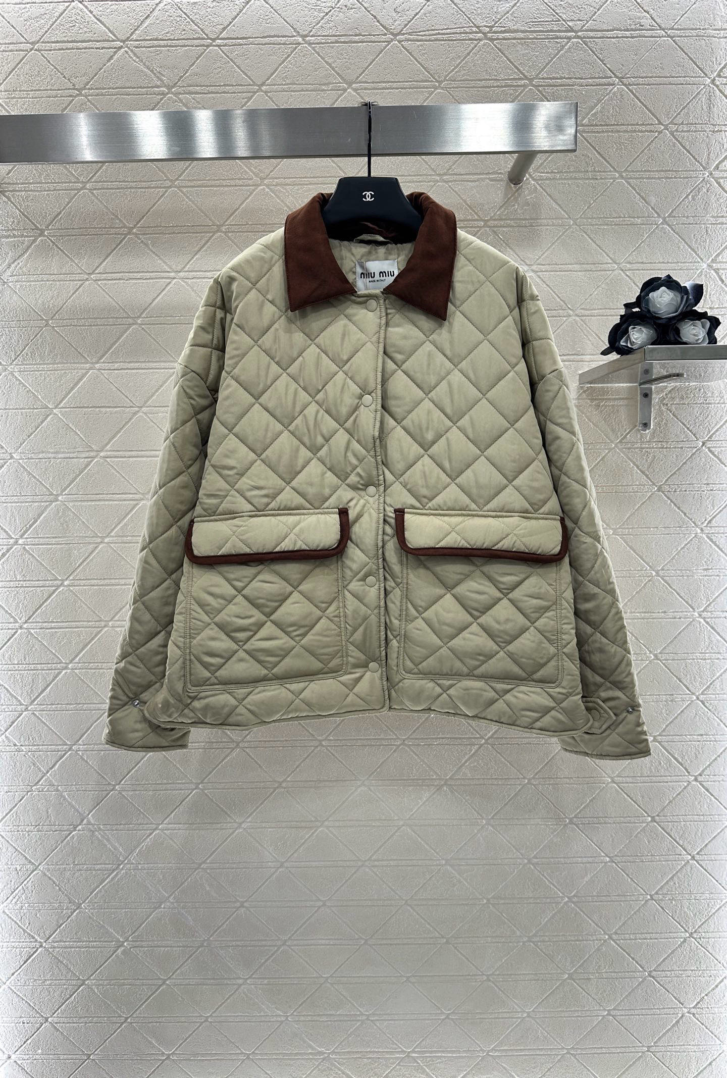这款衣服是AAAAA 1:1 质量 (非常棒). 使用了和原版一模一样的材料. 商标部分也保持了和缪缪/Miu Miu一样. 图片拍摄是实物衣服拍摄, 您所收到的实物保证和我们图片一模一样.
