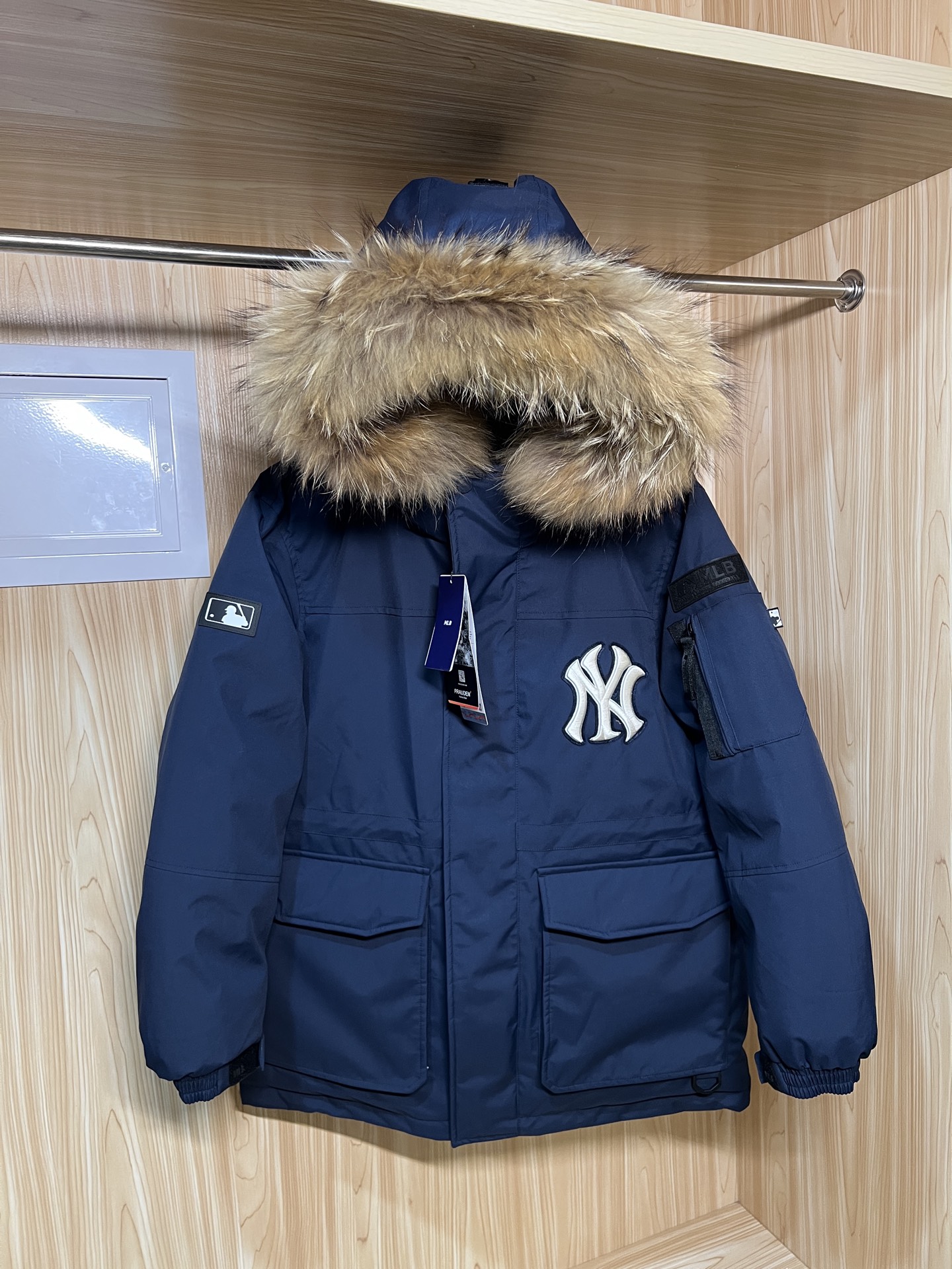 这款衣服是AAAAA 1:1 质量 (非常棒). 使用了和原版一模一样的材料. 商标部分也保持了和Major League Baseball一样. 图片拍摄是实物衣服拍摄, 您所收到的实物保证和我们图片一模一样.