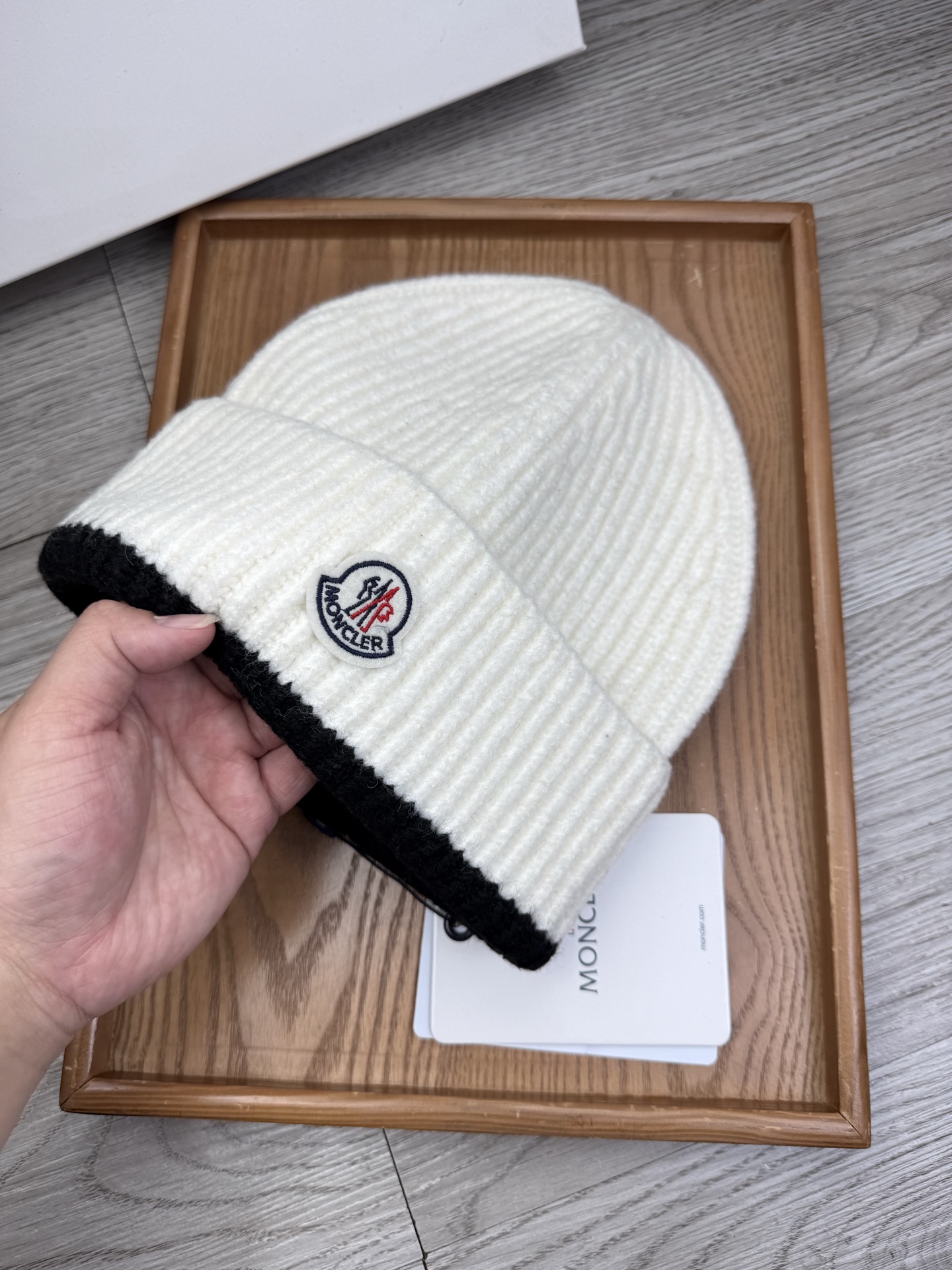这款帽子是AAAAA 1:1 质量 (非常棒). 使用了和原版一模一样的材料. 商标部分也保持了和盟可睐/moncler一样. 图片拍摄是实物帽子拍摄, 您所收到的实物保证和我们图片一模一样.