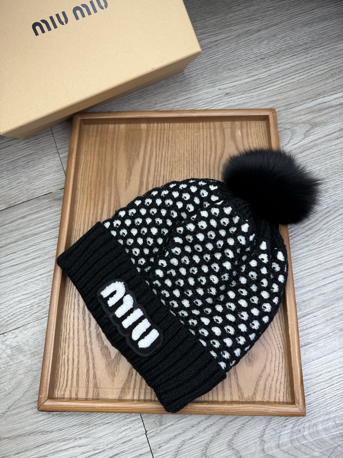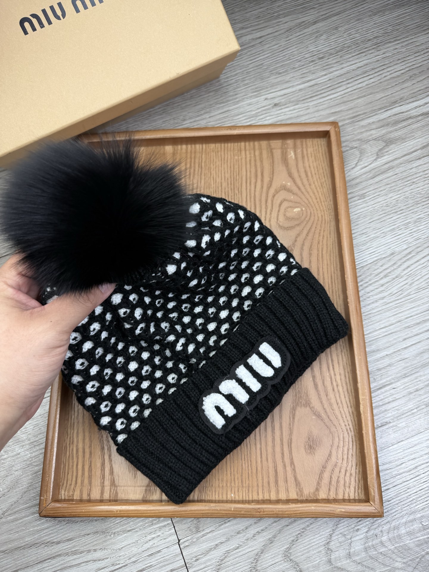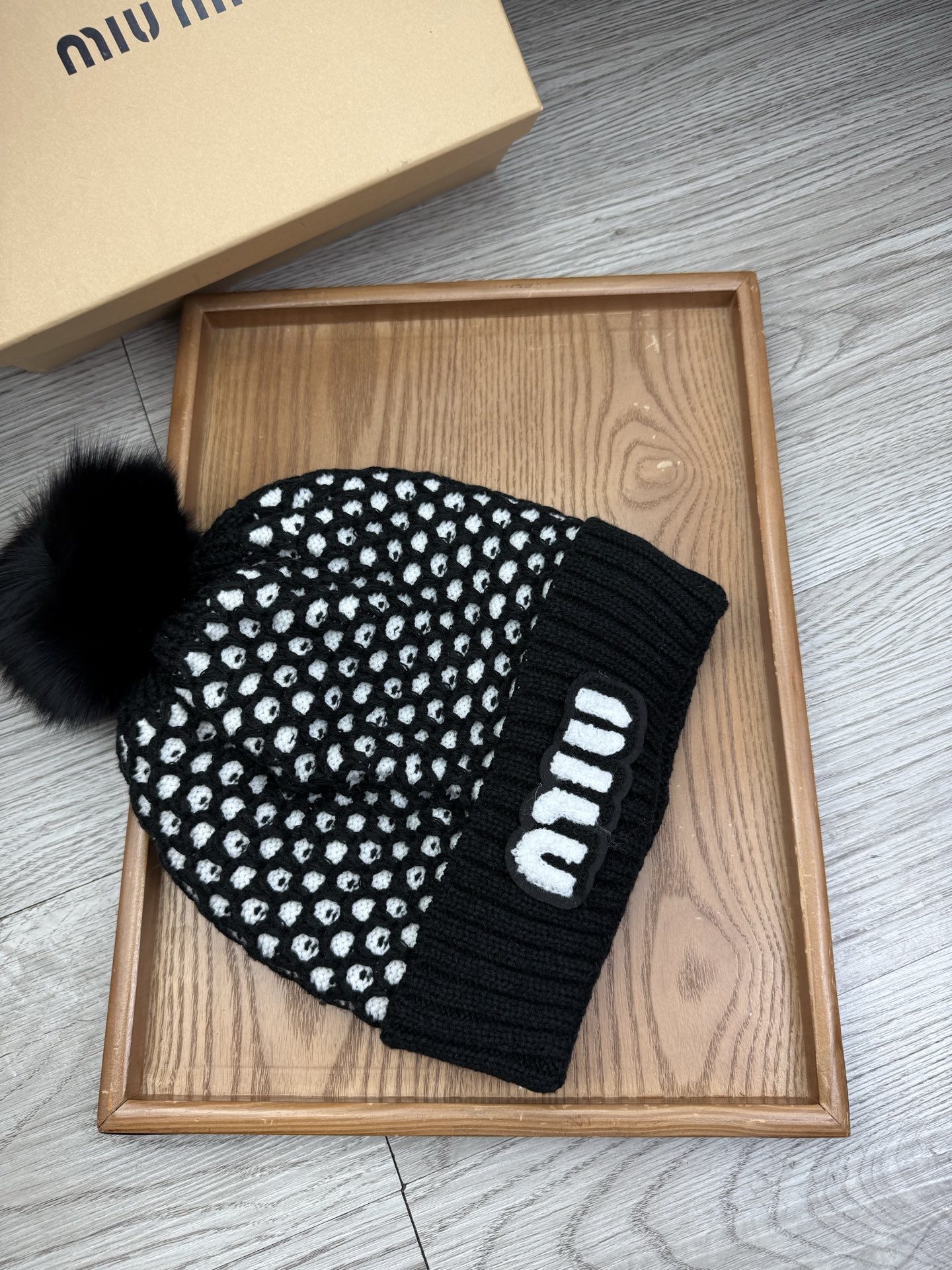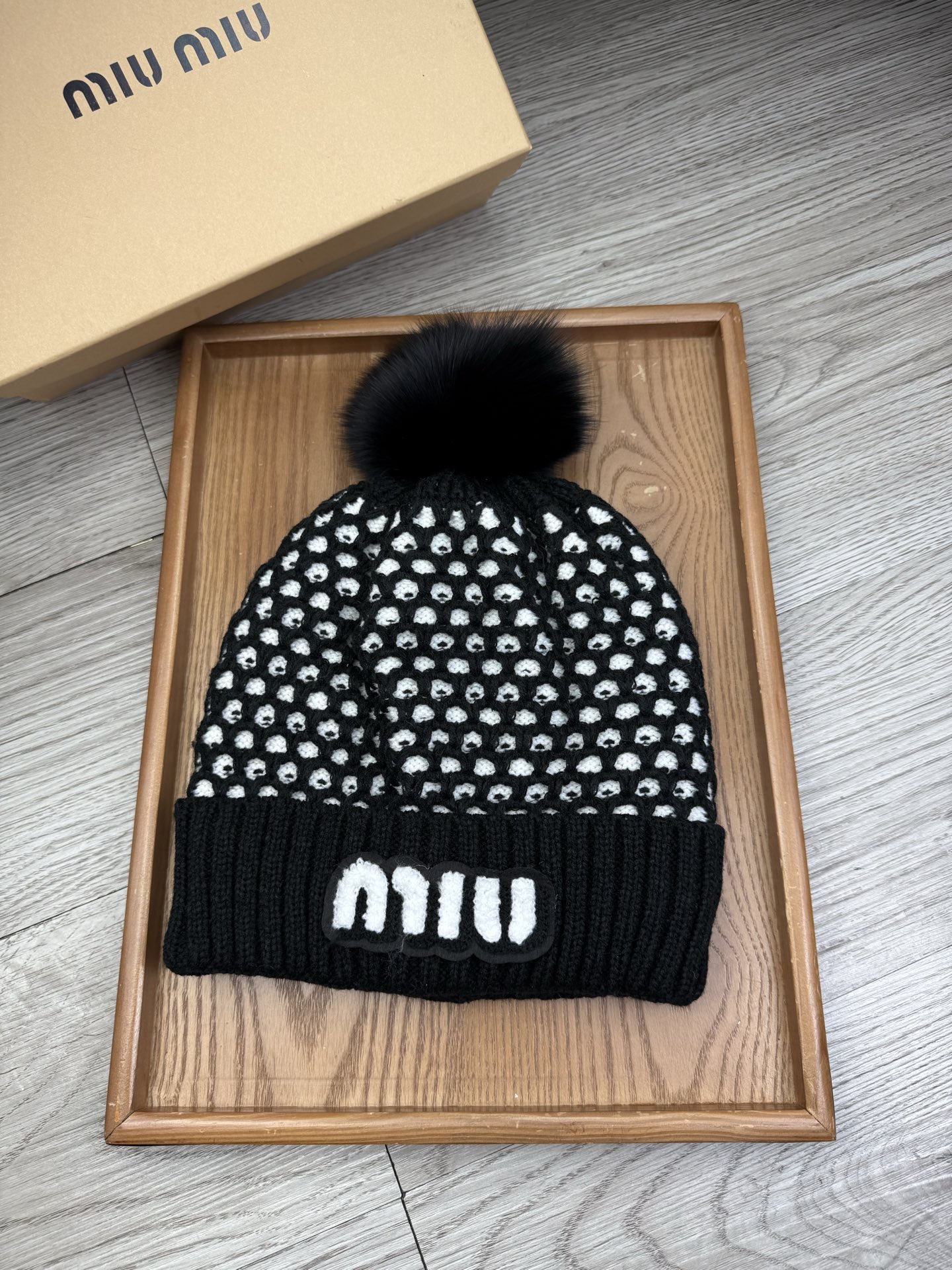 这款帽子是AAAAA 1:1 质量 (非常棒). 使用了和原版一模一样的材料. 商标部分也保持了和缪缪/Miu Miu一样. 图片拍摄是实物帽子拍摄, 您所收到的实物保证和我们图片一模一样.