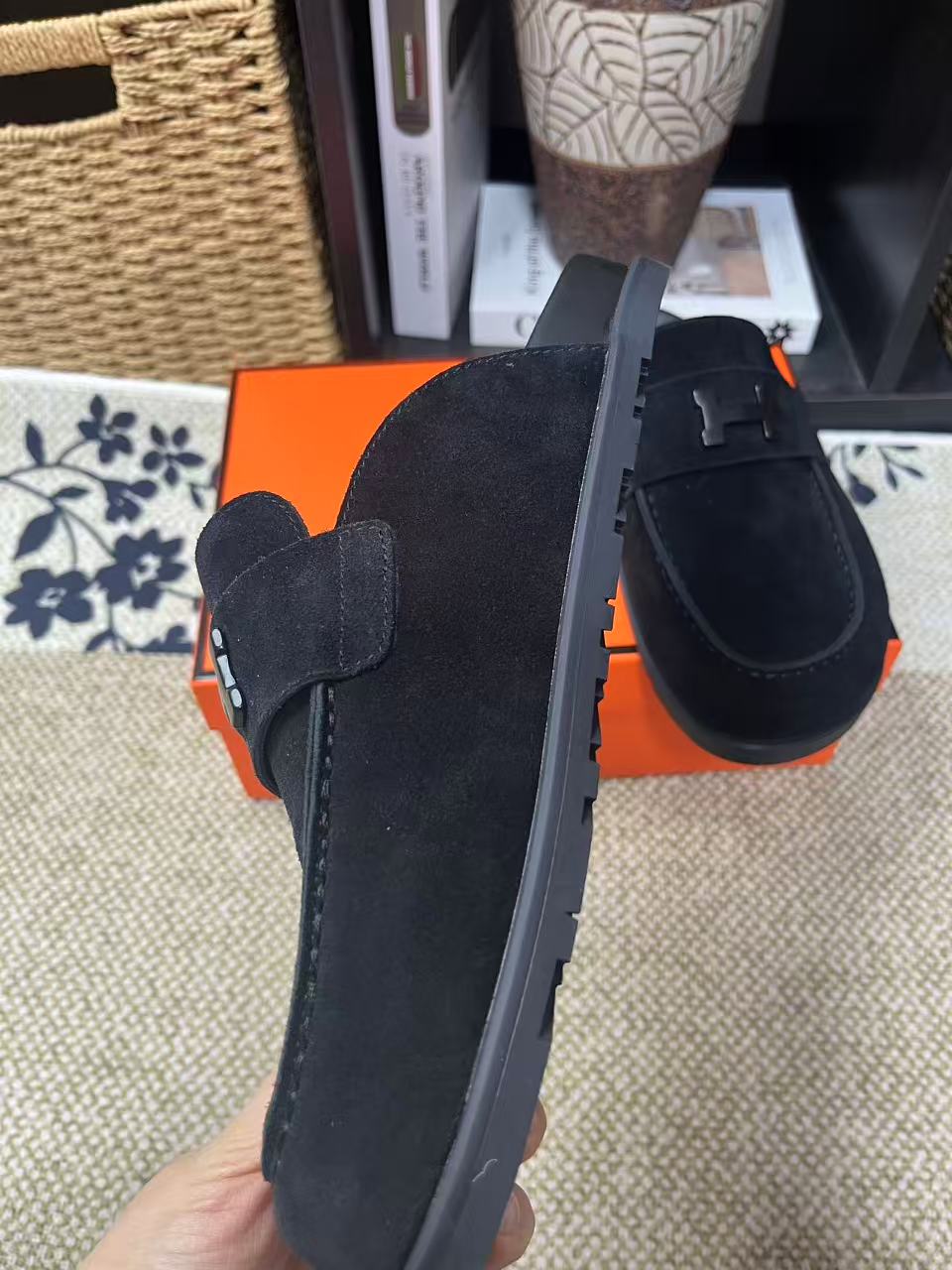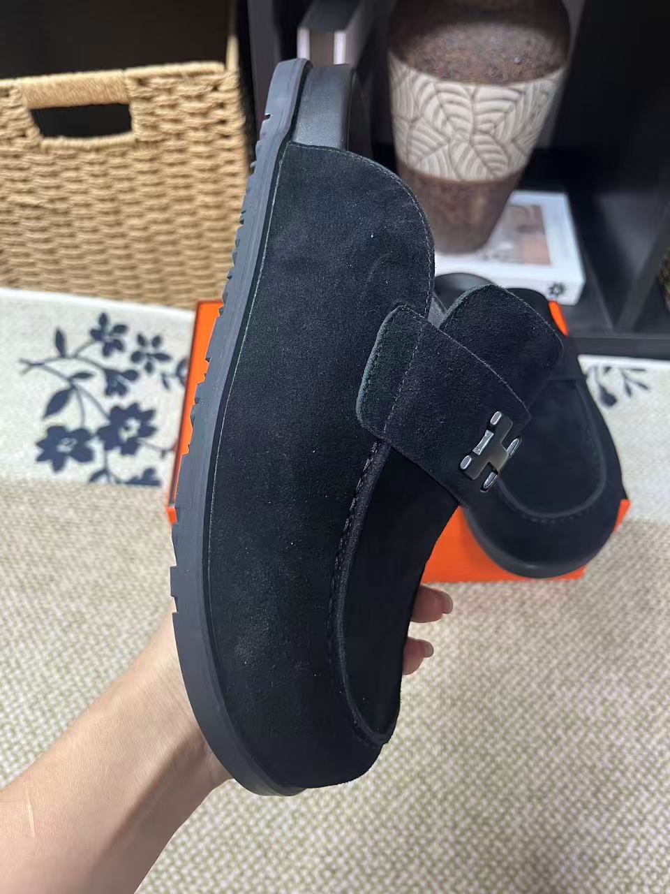 这款鞋子是AAAAA 1:1 质量 (非常棒). 使用了和原版一模一样的材料. 商标部分也保持了和爱马仕/Hermes一样. 图片拍摄是实物鞋子拍摄, 您所收到的实物保证和我们图片一模一样.