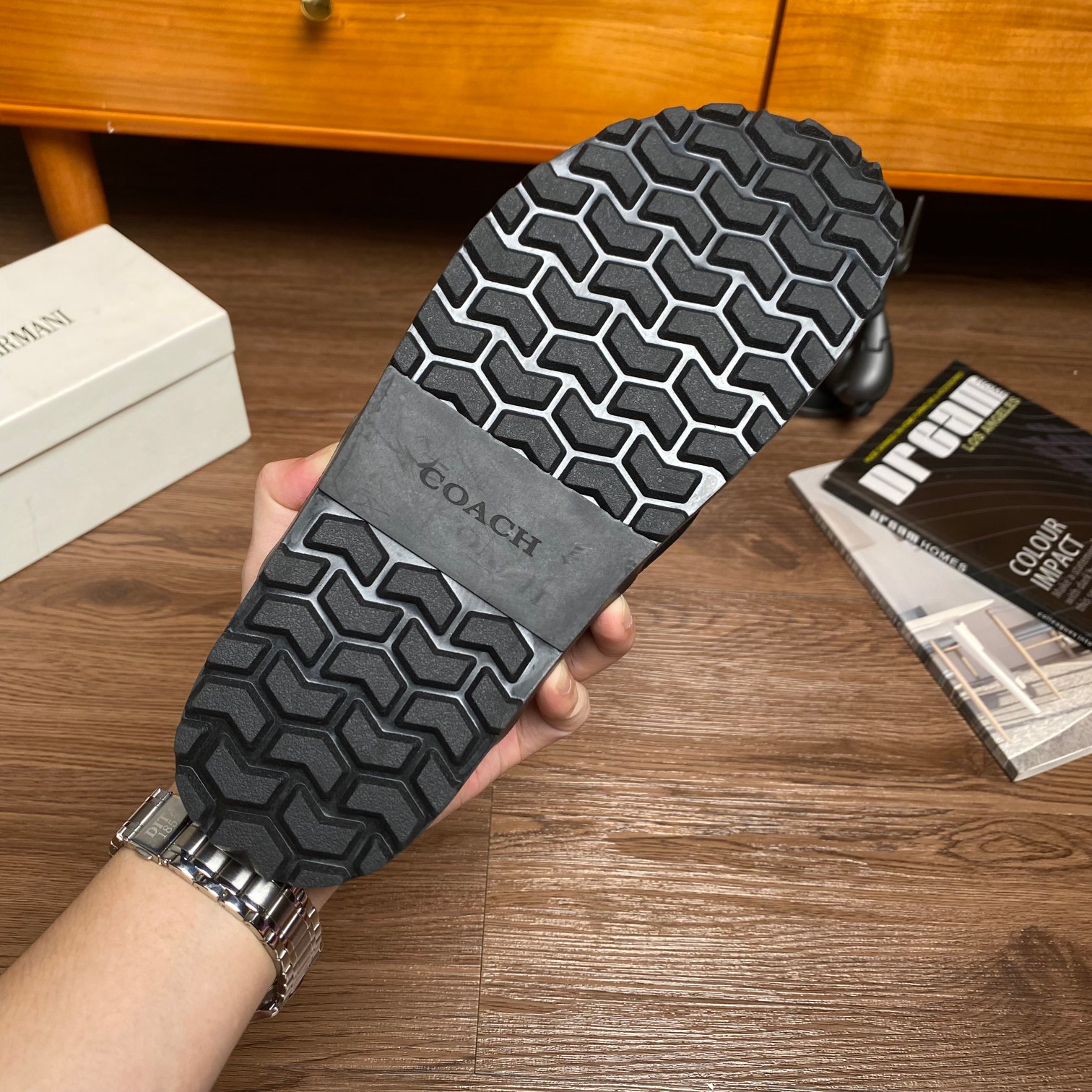 这款鞋子是AAAAA 1:1 质量 (非常棒). 使用了和原版一模一样的材料. 商标部分也保持了和蔻驰/Coach一样. 图片拍摄是实物鞋子拍摄, 您所收到的实物保证和我们图片一模一样.