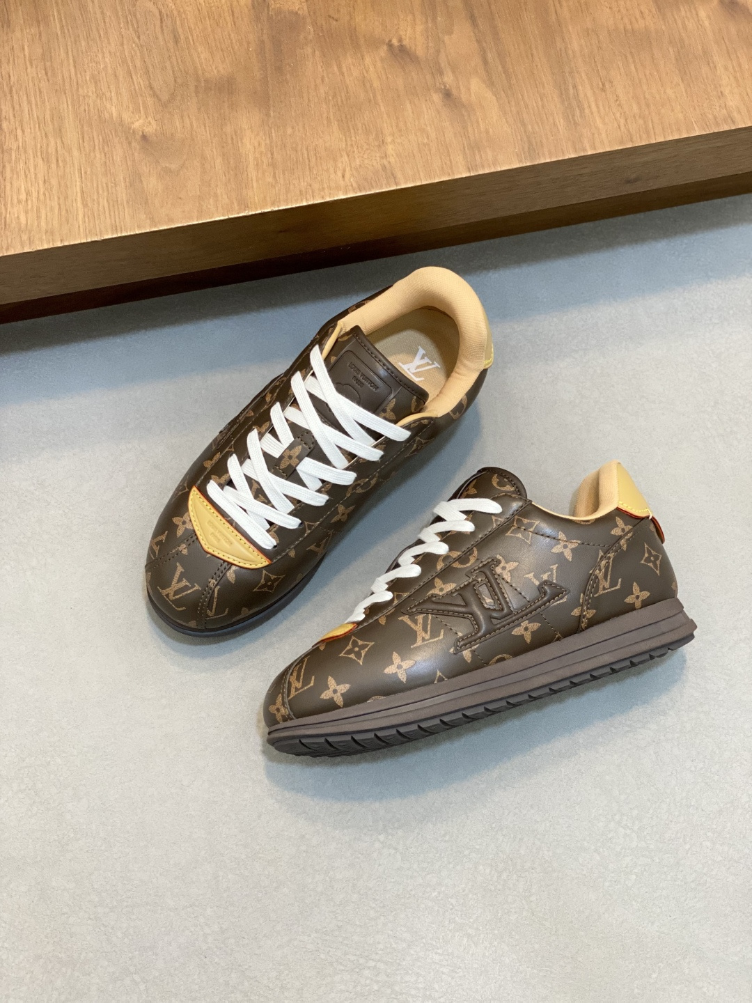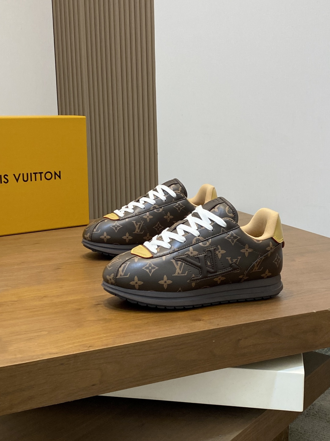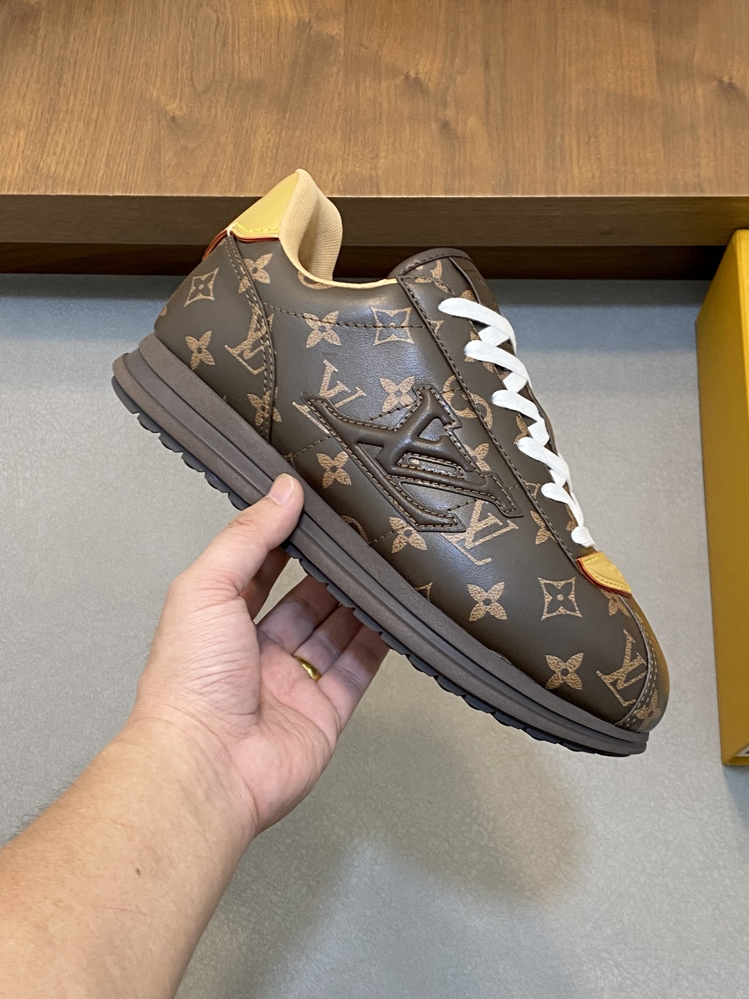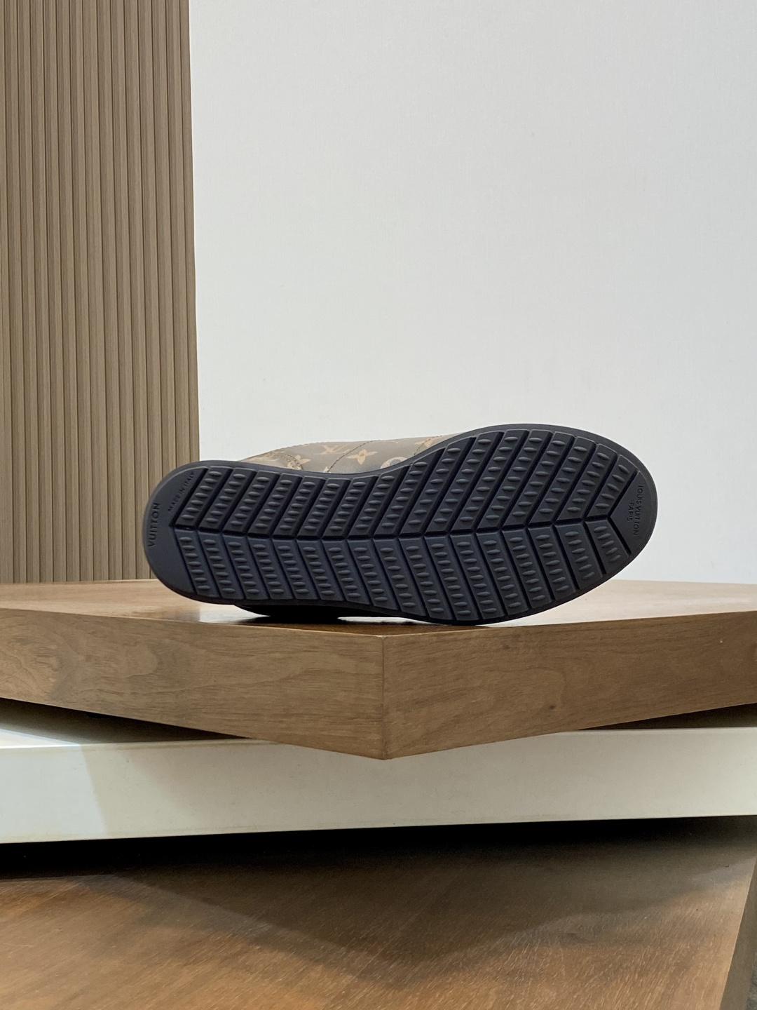 这款鞋子是AAAAA 1:1 质量 (非常棒). 使用了和原版一模一样的材料. 商标部分也保持了和路易威登/Louis Vuitton一样. 图片拍摄是实物鞋子拍摄, 您所收到的实物保证和我们图片一模一样.
