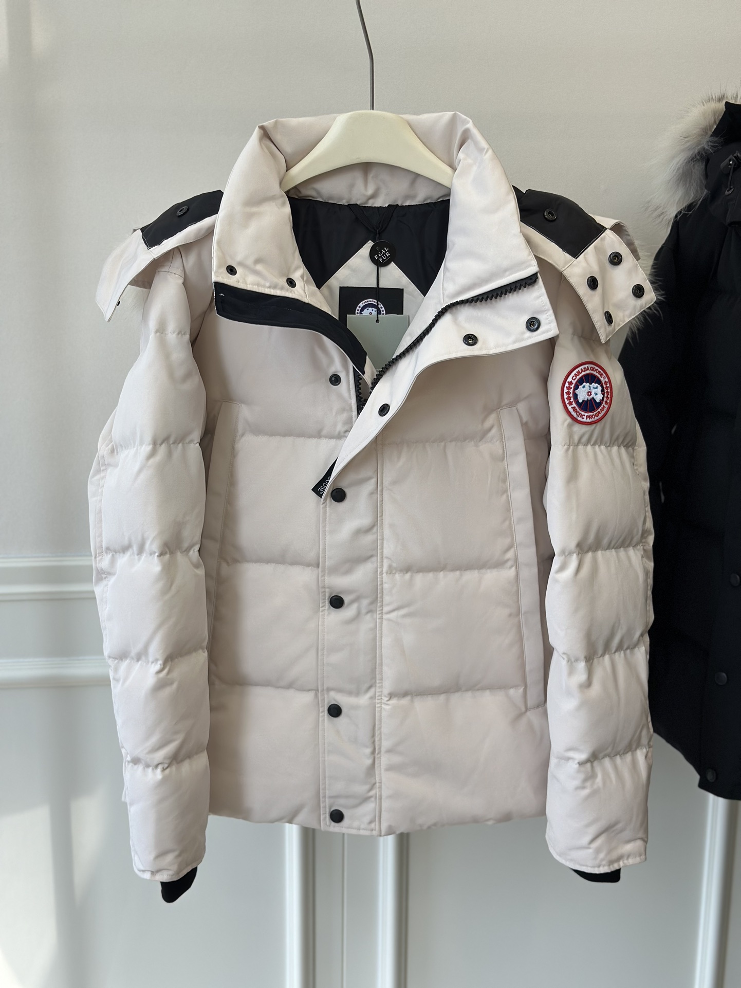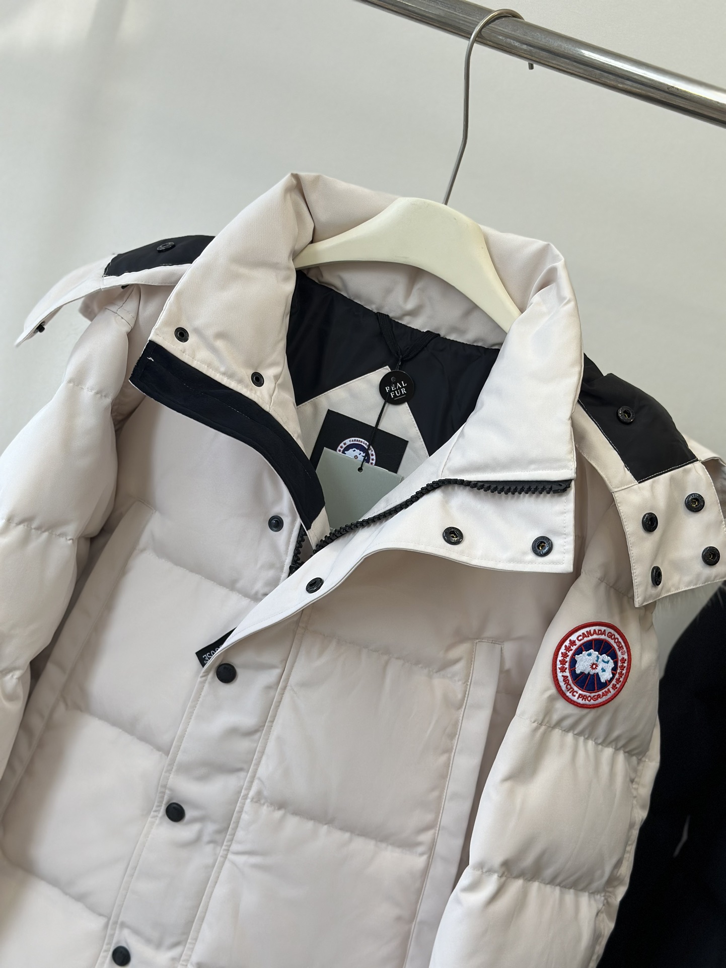 这款衣服是AAAAA 1:1 质量 (非常棒). 使用了和原版一模一样的材料. 商标部分也保持了和Canada Goose一样. 图片拍摄是实物衣服拍摄, 您所收到的实物保证和我们图片一模一样.