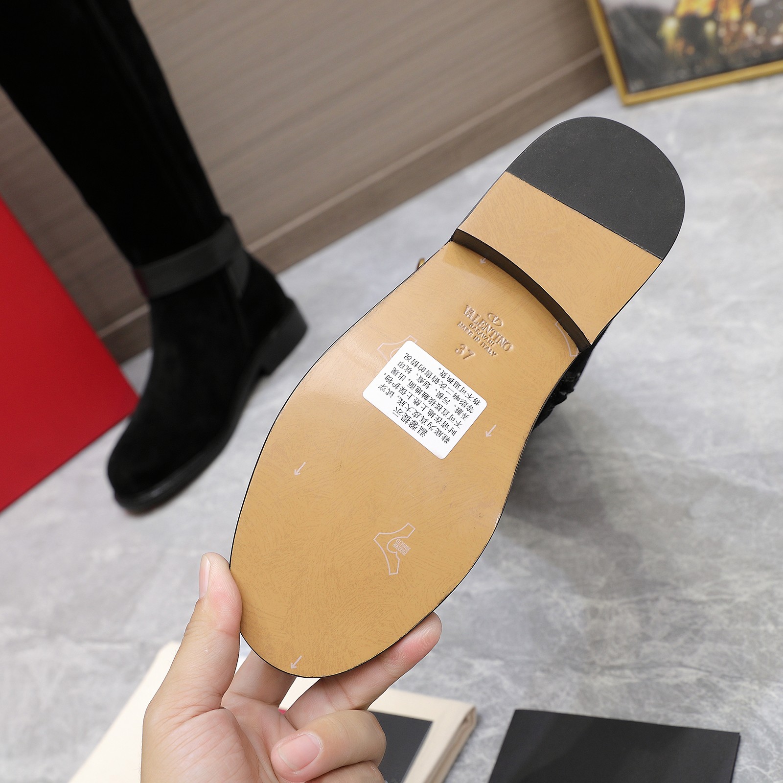 这款鞋子是AAAAA 1:1 质量 (非常棒). 使用了和原版一模一样的材料. 商标部分也保持了和华伦天奴/Valentino一样. 图片拍摄是实物鞋子拍摄, 您所收到的实物保证和我们图片一模一样.