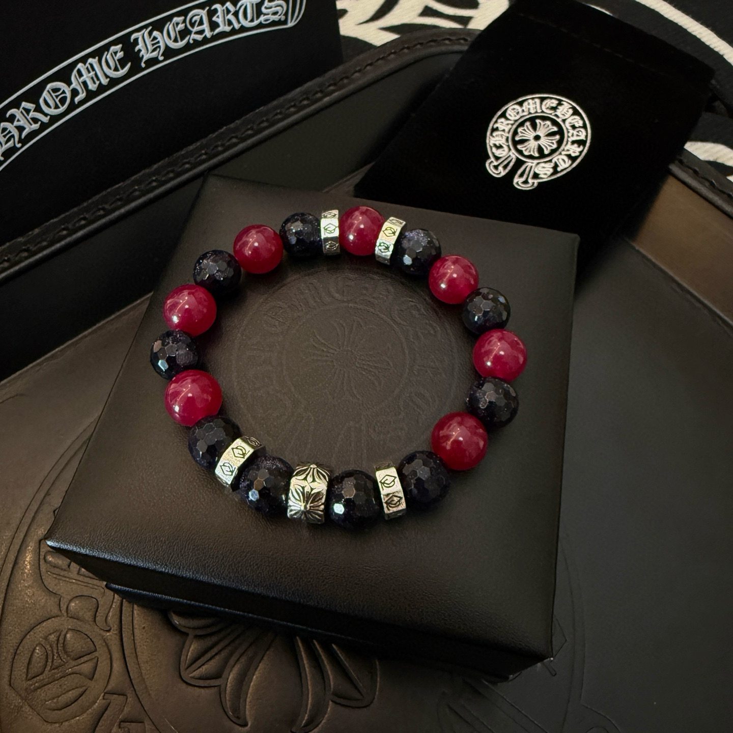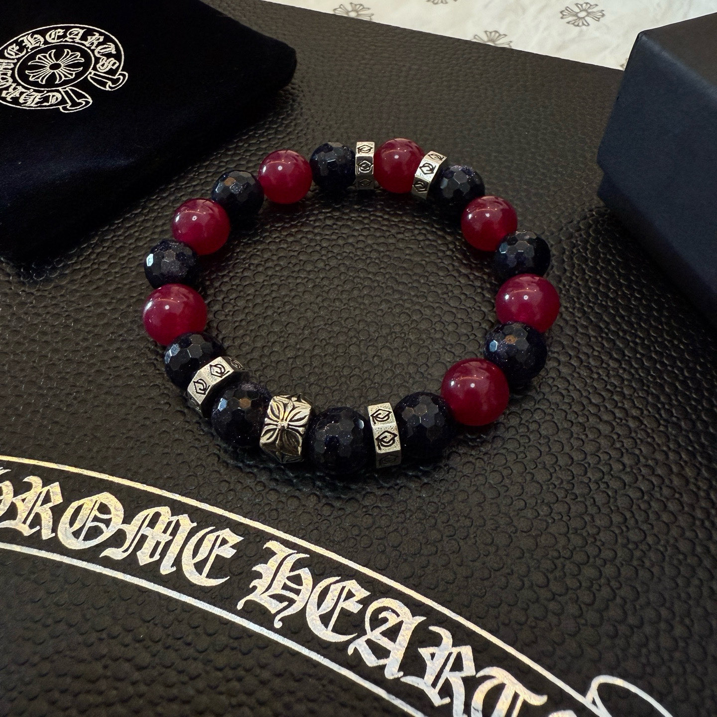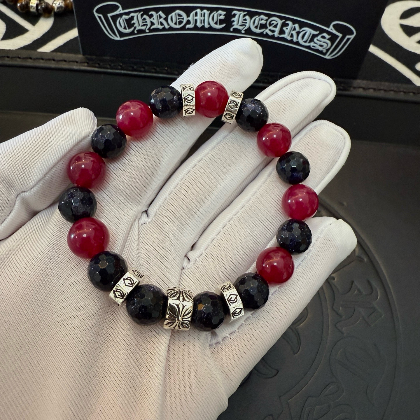 这款首饰是AAAAA 1:1 质量 (非常棒). 使用了和原版一模一样的材料. 商标部分也保持了和克罗心/Chrome Hearts一样. 图片拍摄是实物首饰拍摄, 您所收到的实物保证和我们图片一模一样.