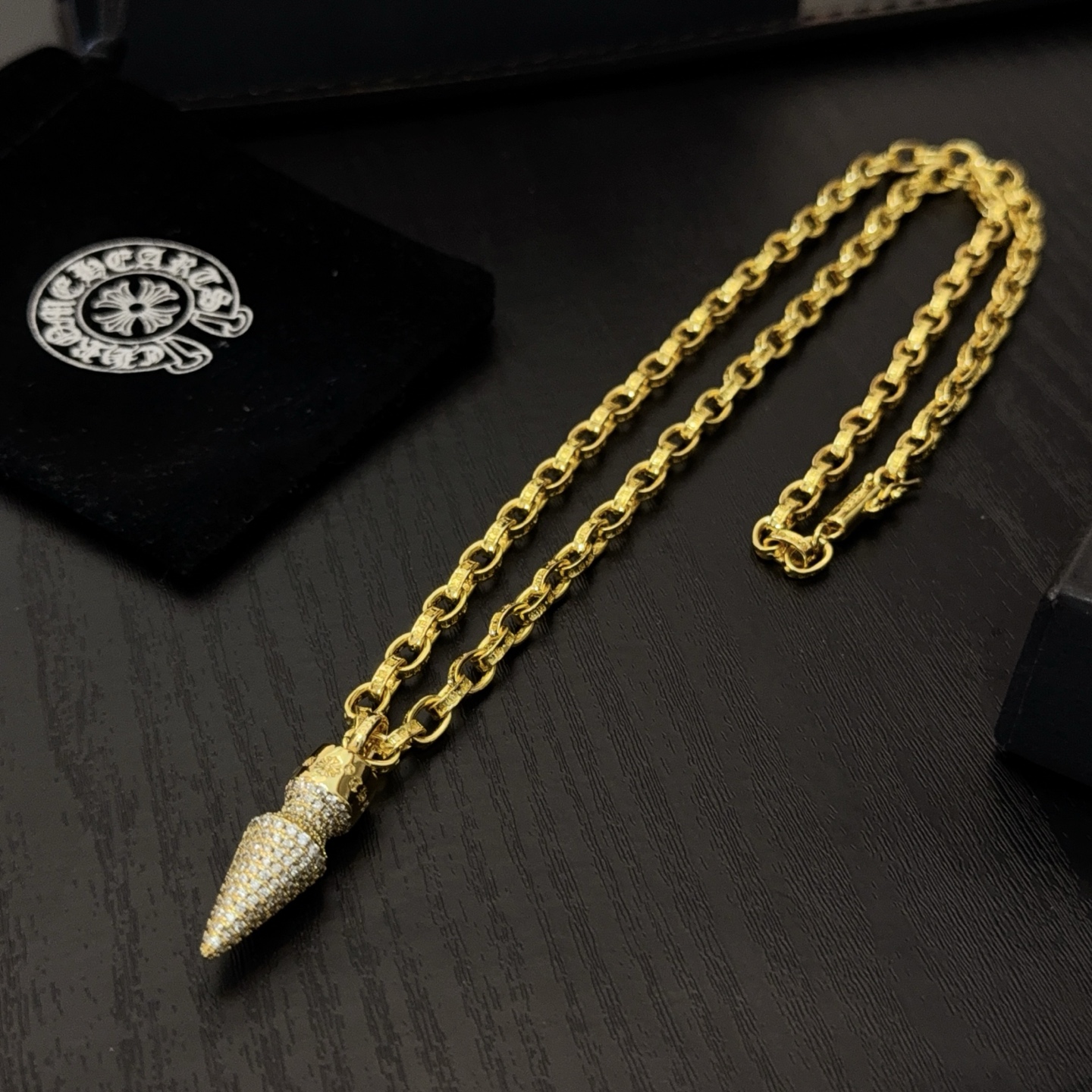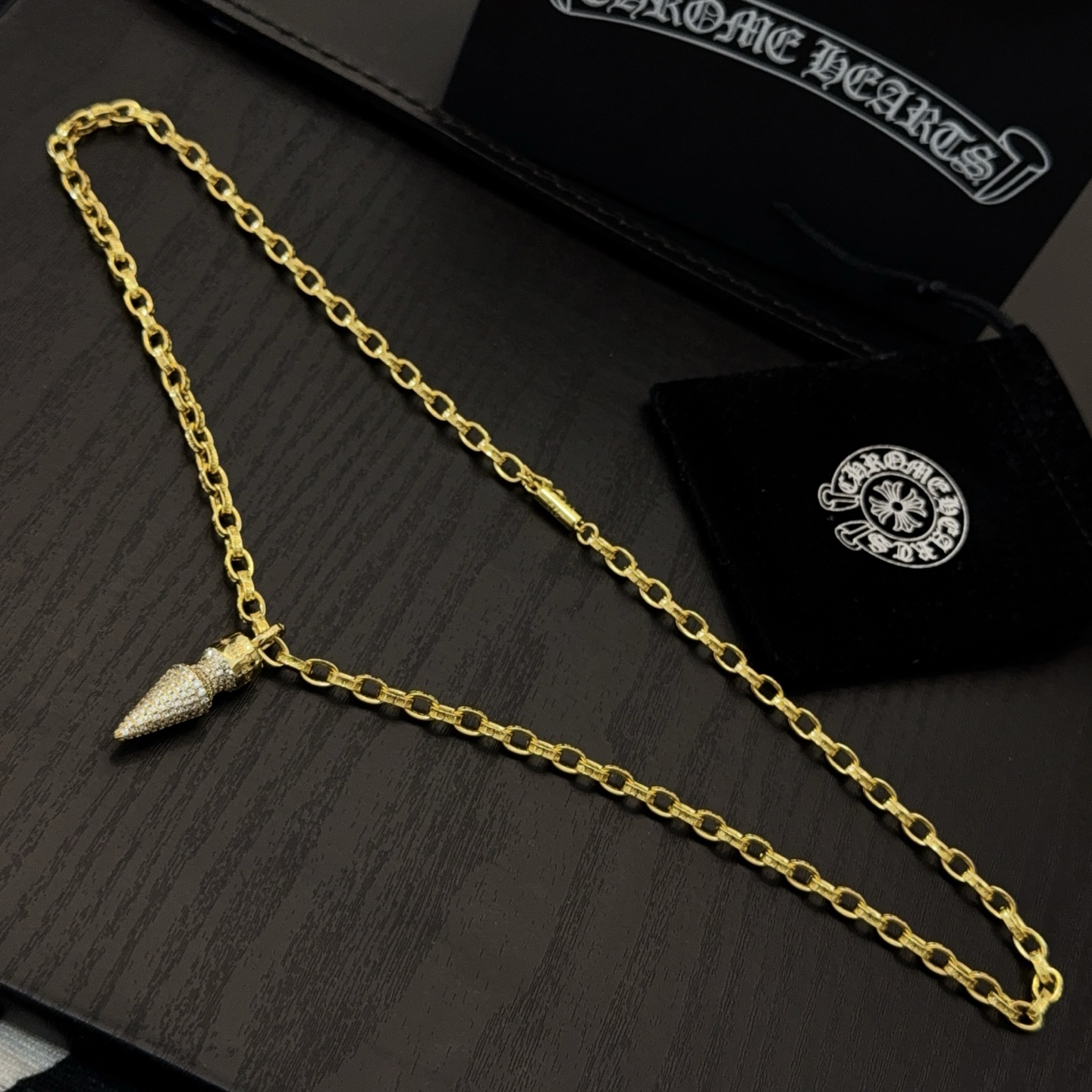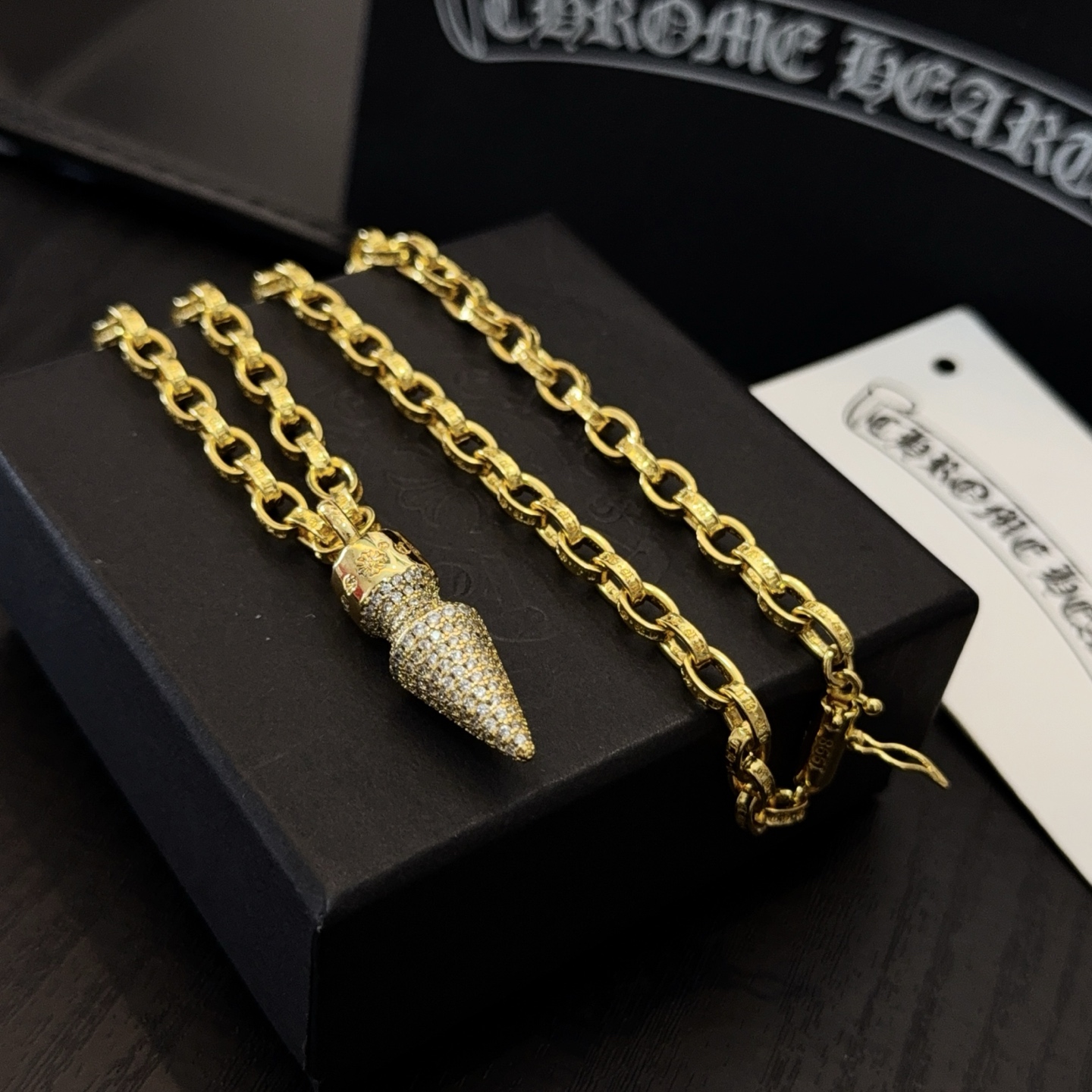 这款首饰是AAAAA 1:1 质量 (非常棒). 使用了和原版一模一样的材料. 商标部分也保持了和克罗心/Chrome Hearts一样. 图片拍摄是实物首饰拍摄, 您所收到的实物保证和我们图片一模一样.