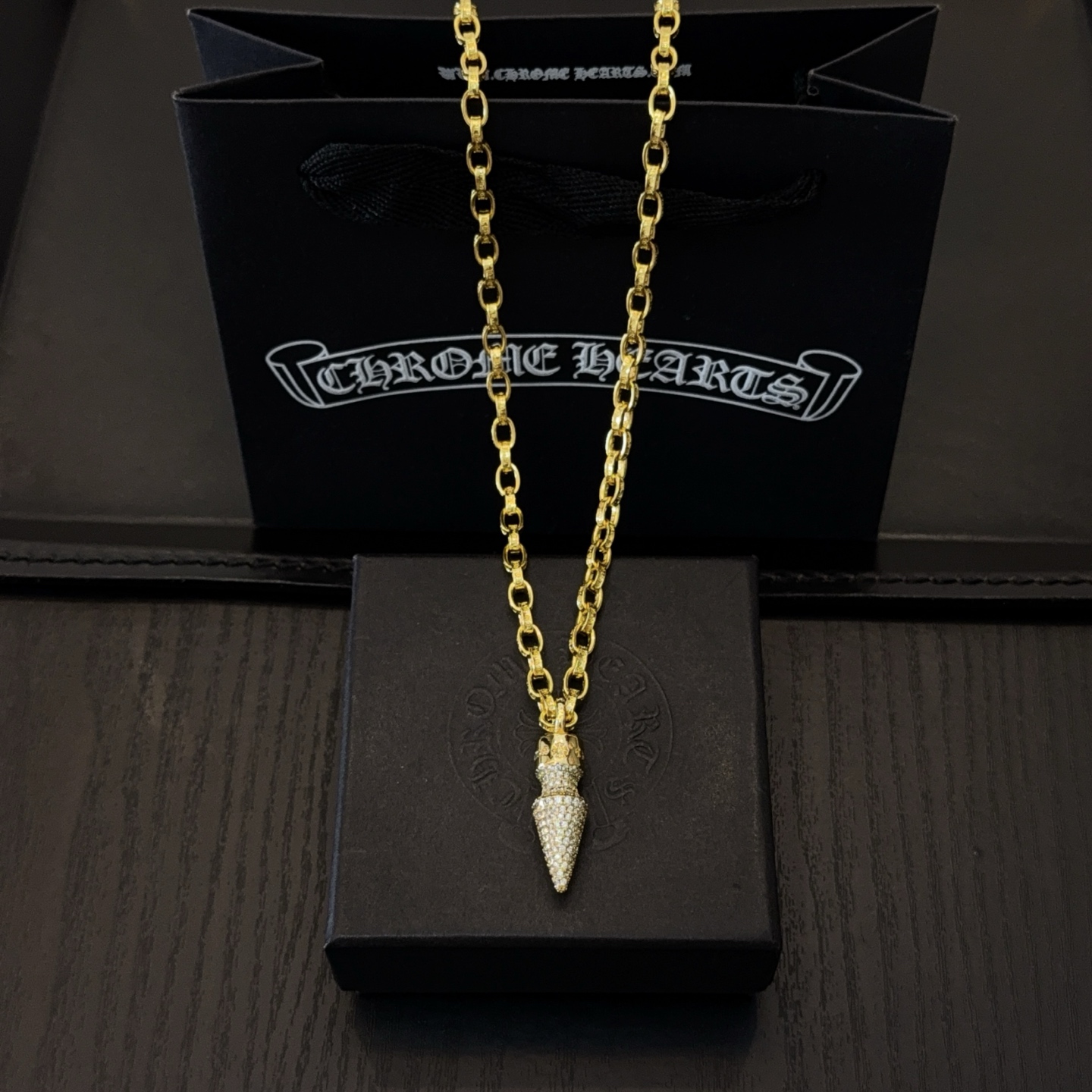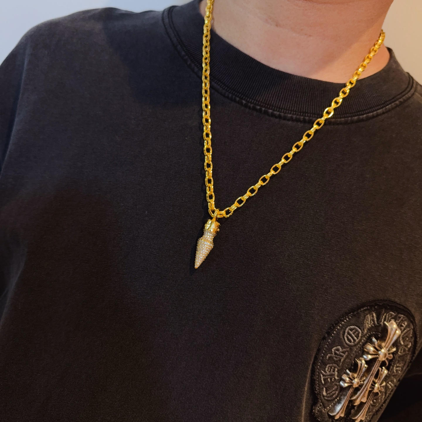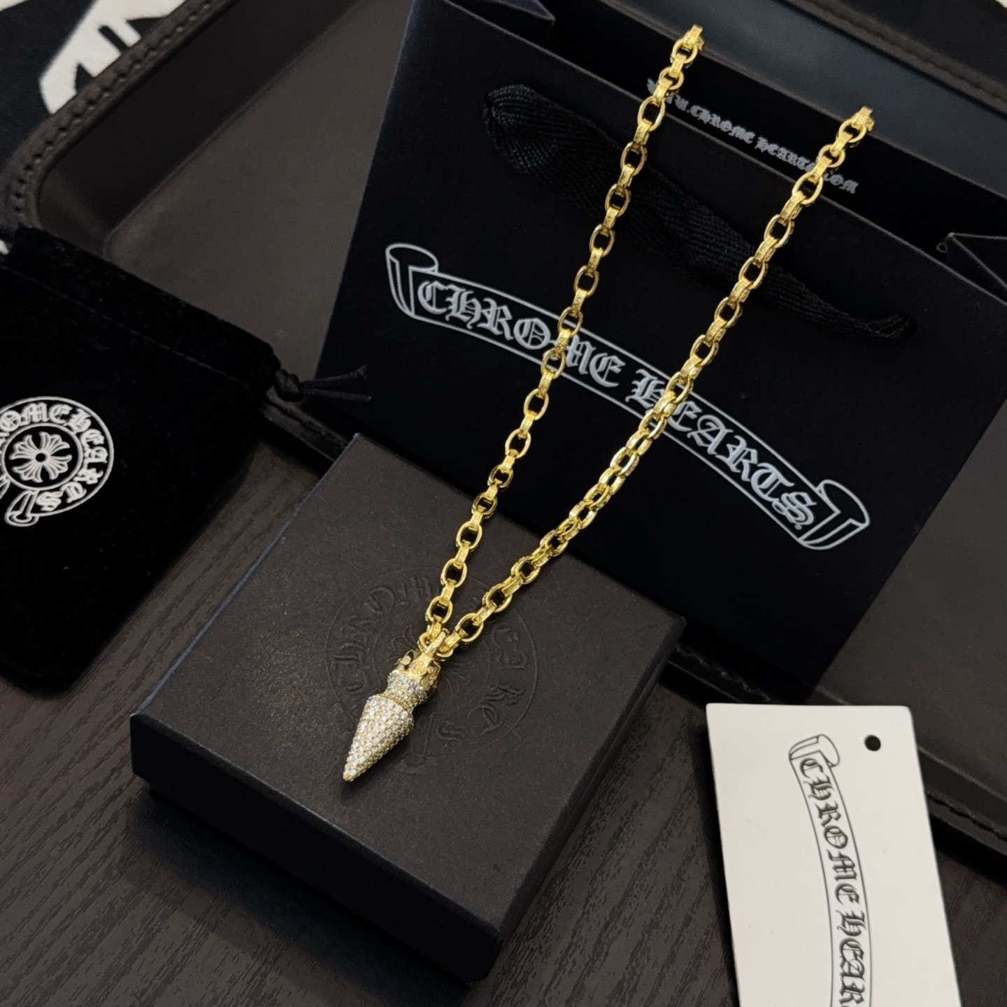这款首饰是AAAAA 1:1 质量 (非常棒). 使用了和原版一模一样的材料. 商标部分也保持了和克罗心/Chrome Hearts一样. 图片拍摄是实物首饰拍摄, 您所收到的实物保证和我们图片一模一样.