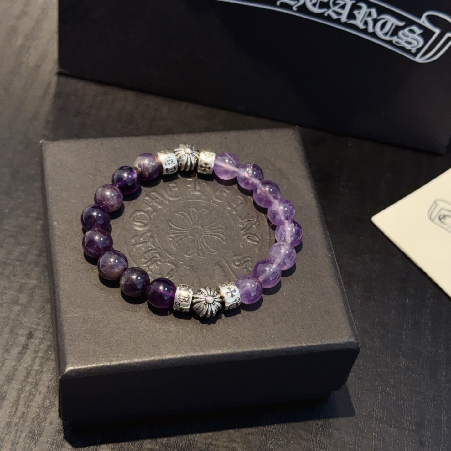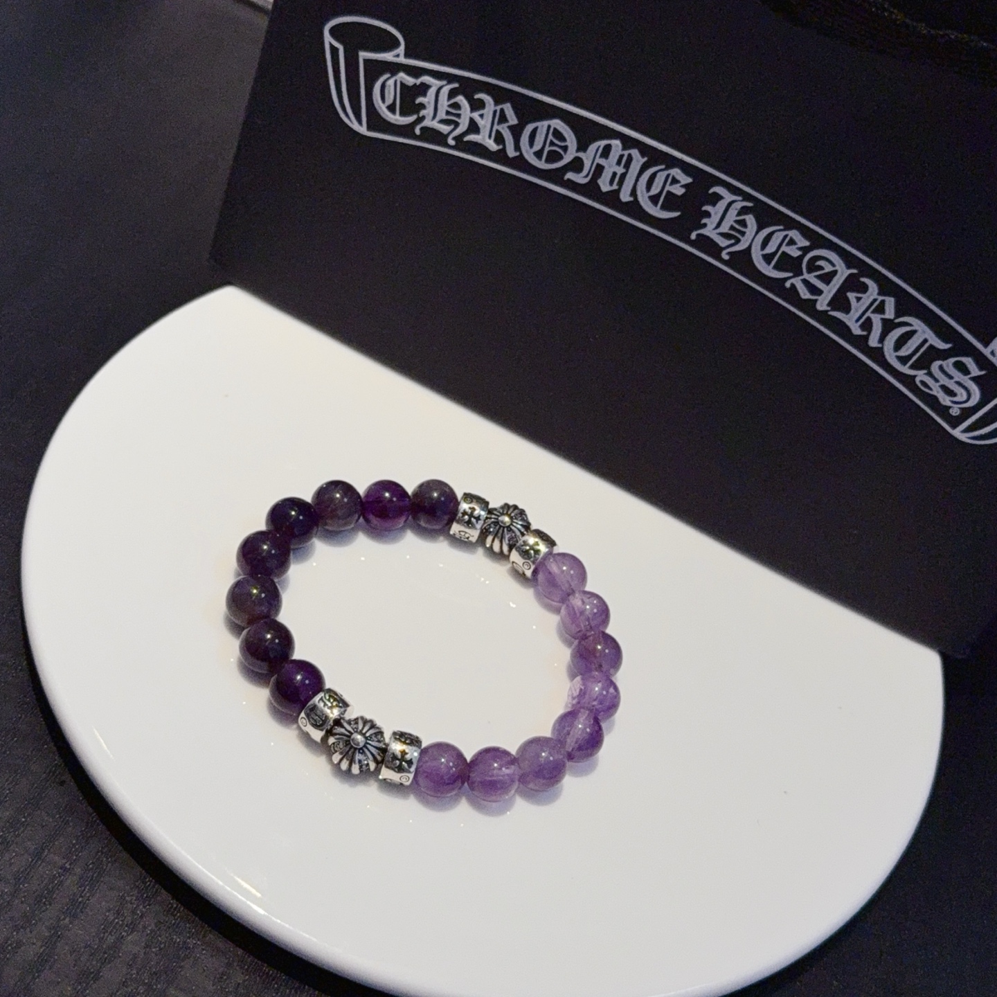 这款首饰是AAAAA 1:1 质量 (非常棒). 使用了和原版一模一样的材料. 商标部分也保持了和克罗心/Chrome Hearts一样. 图片拍摄是实物首饰拍摄, 您所收到的实物保证和我们图片一模一样.