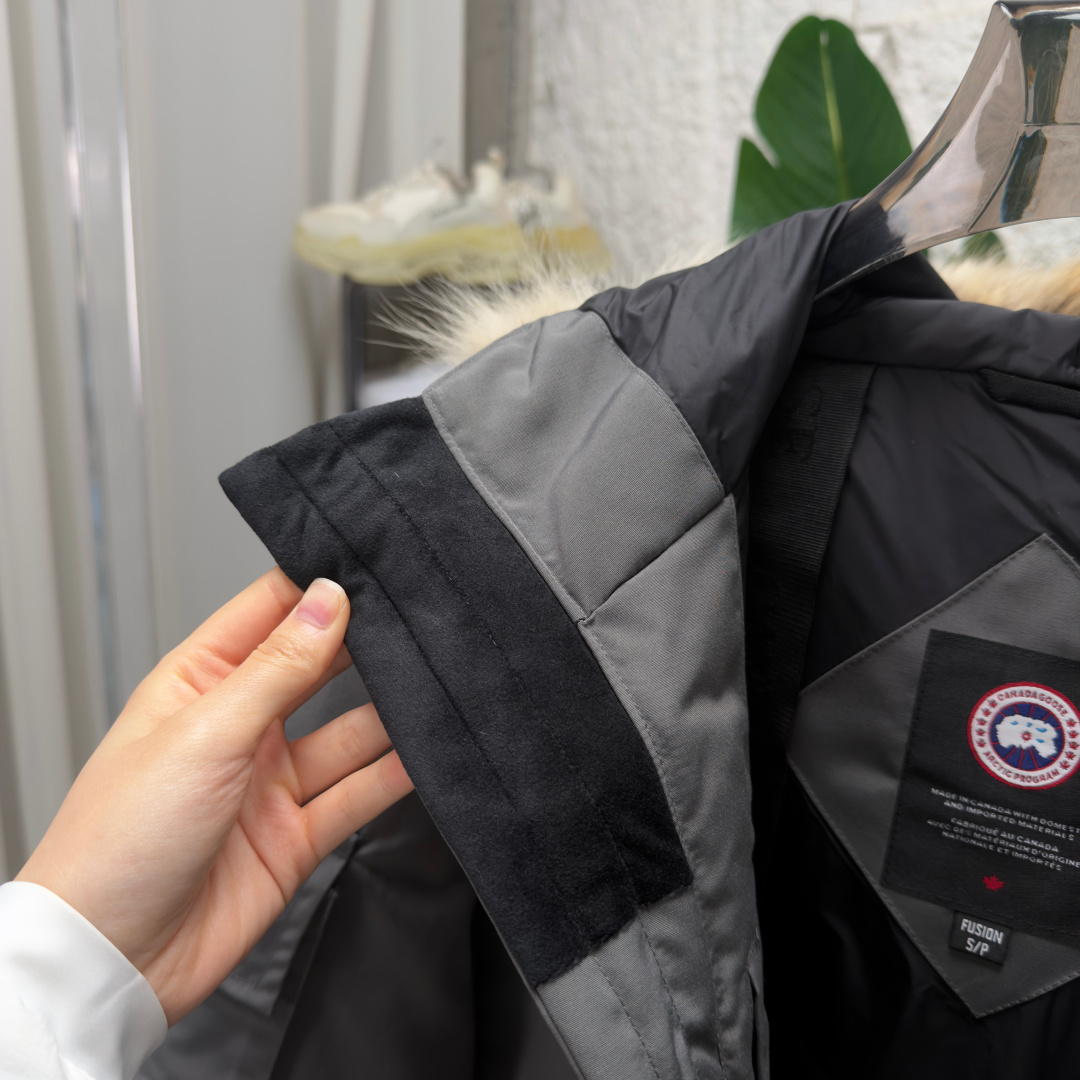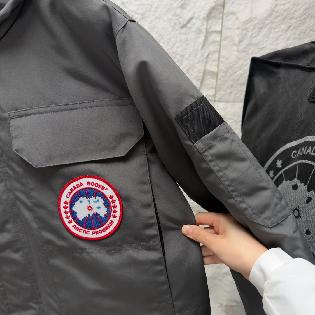 这款衣服是AAAAA 1:1 质量 (非常棒). 使用了和原版一模一样的材料. 商标部分也保持了和Canada Goose一样. 图片拍摄是实物衣服拍摄, 您所收到的实物保证和我们图片一模一样.