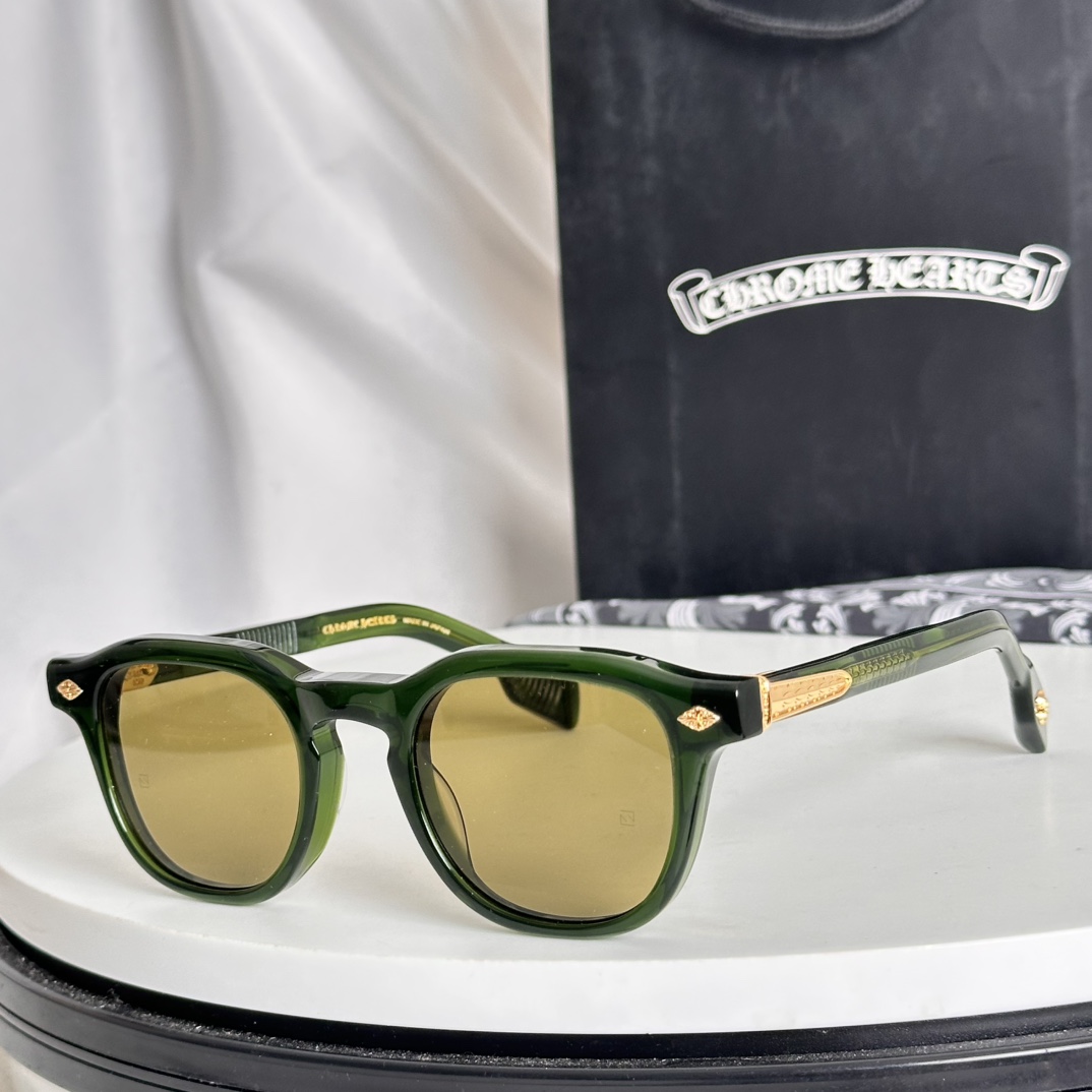 这款太阳眼镜是AAAAA 1:1 质量 (非常棒). 使用了和原版一模一样的材料. 商标部分也保持了和克罗心/Chrome Hearts一样. 图片拍摄是实物太阳眼镜拍摄, 您所收到的实物保证和我们图片一模一样.