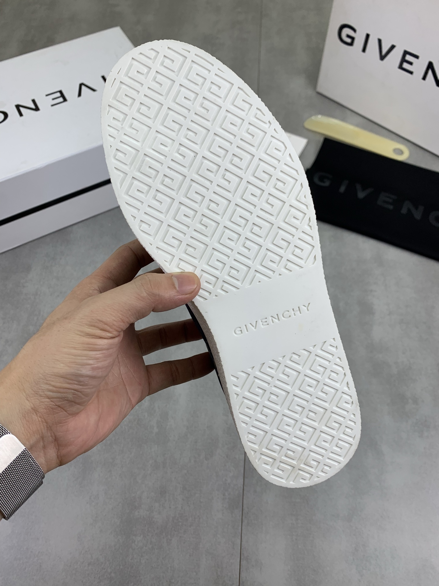 这款鞋子是AAAAA 1:1 质量 (非常棒). 使用了和原版一模一样的材料. 商标部分也保持了和纪梵希/Givenchy一样. 图片拍摄是实物鞋子拍摄, 您所收到的实物保证和我们图片一模一样.