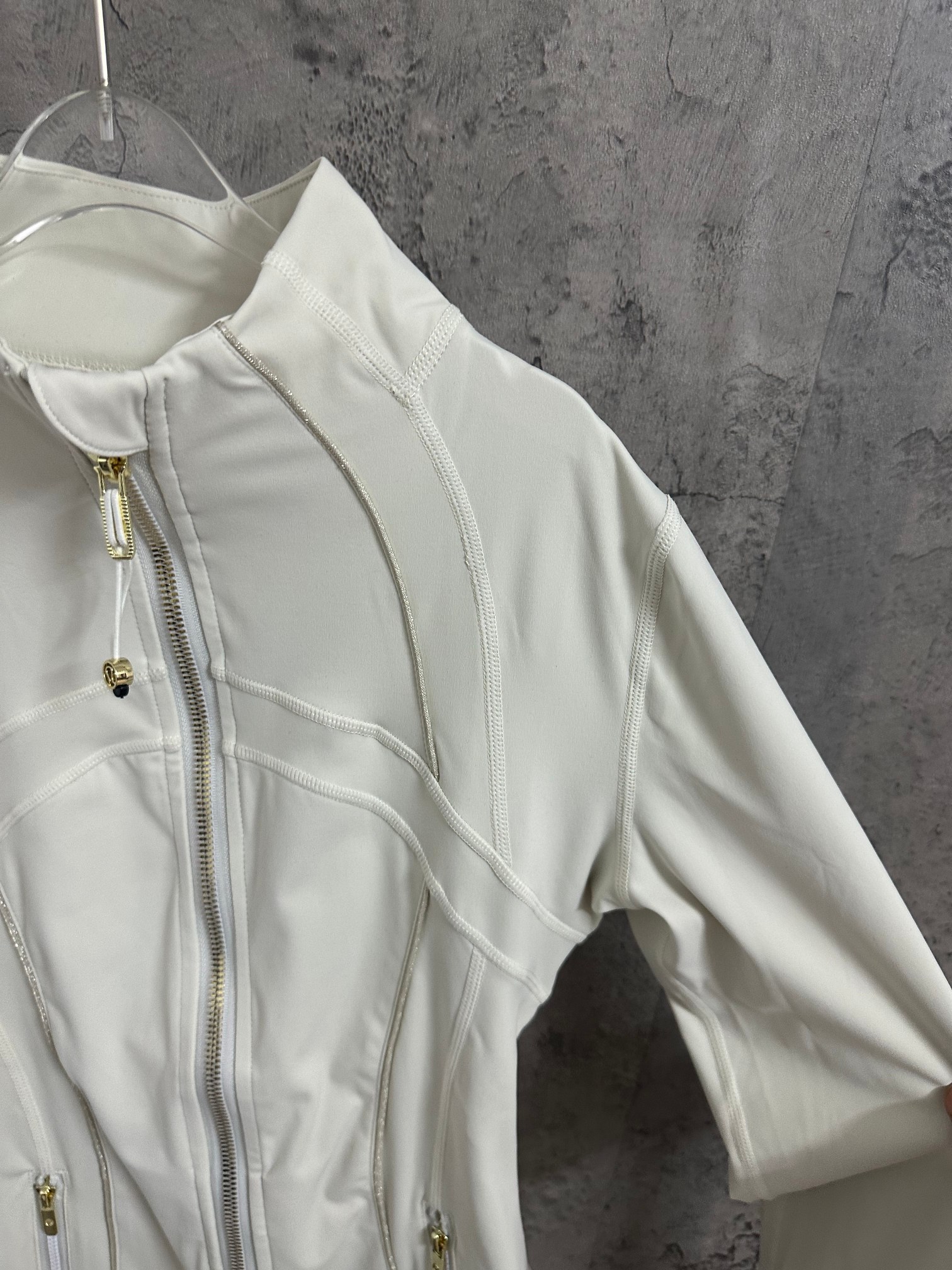 这款衣服是AAAAA 1:1 质量 (非常棒). 使用了和原版一模一样的材料. 商标部分也保持了和Lululemon一样. 图片拍摄是实物衣服拍摄, 您所收到的实物保证和我们图片一模一样.
