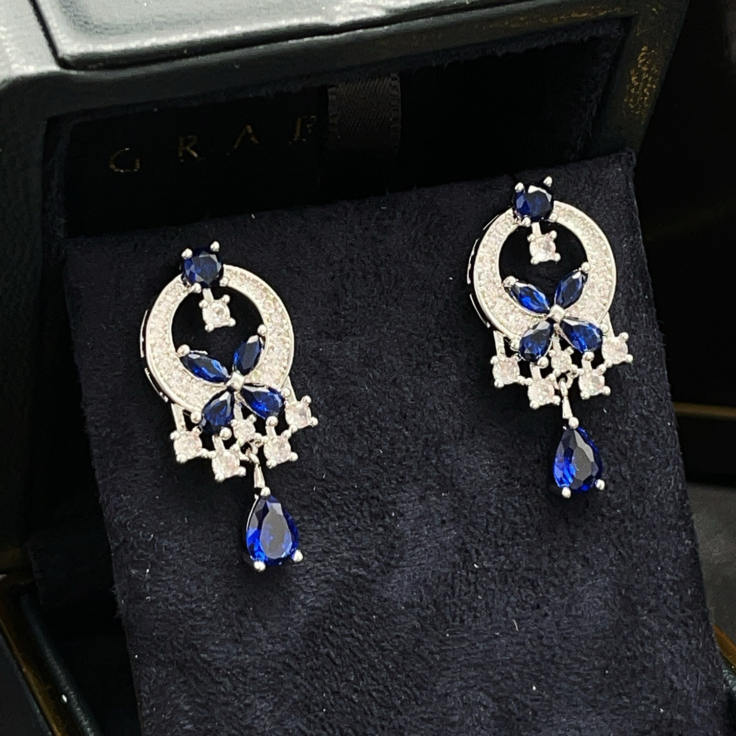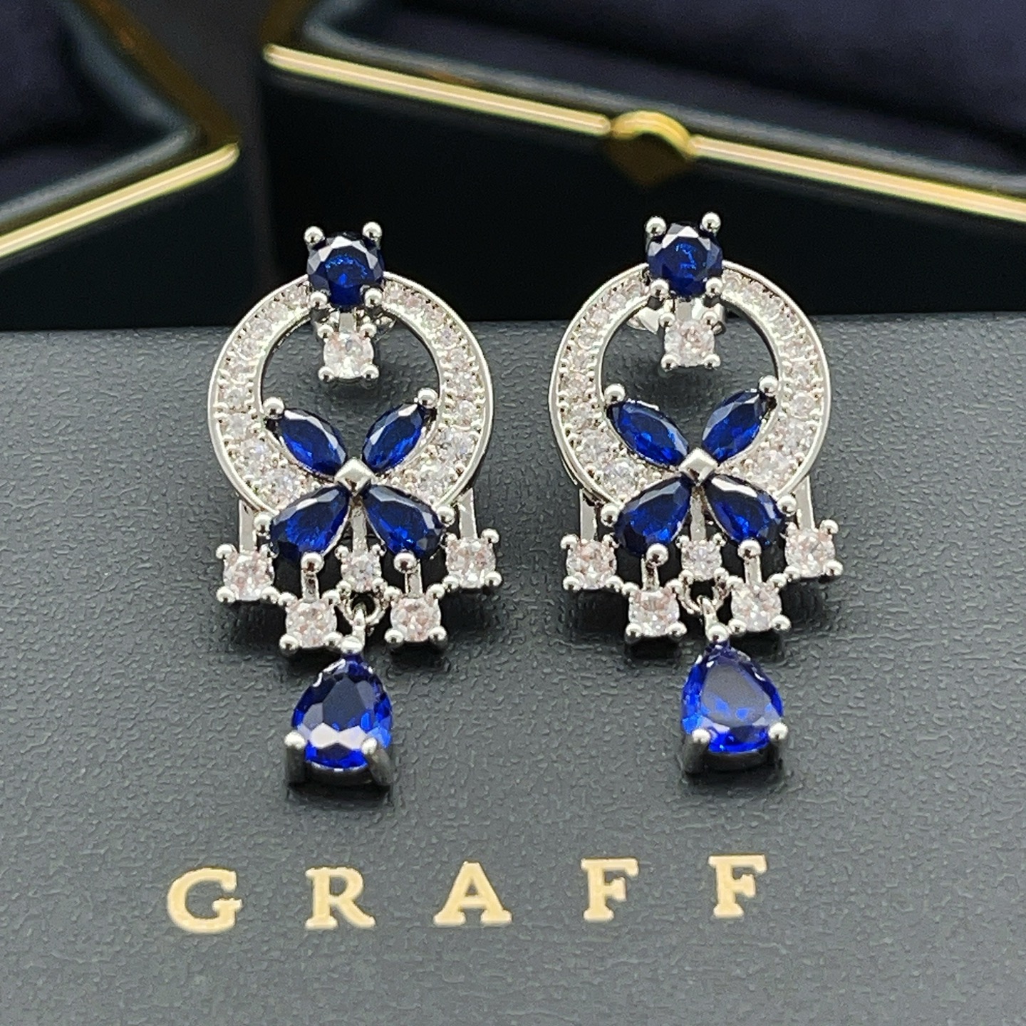 这款首饰是AAAAA 1:1 质量 (非常棒). 使用了和原版一模一样的材料. 商标部分也保持了和GRAFF一样. 图片拍摄是实物首饰拍摄, 您所收到的实物保证和我们图片一模一样.