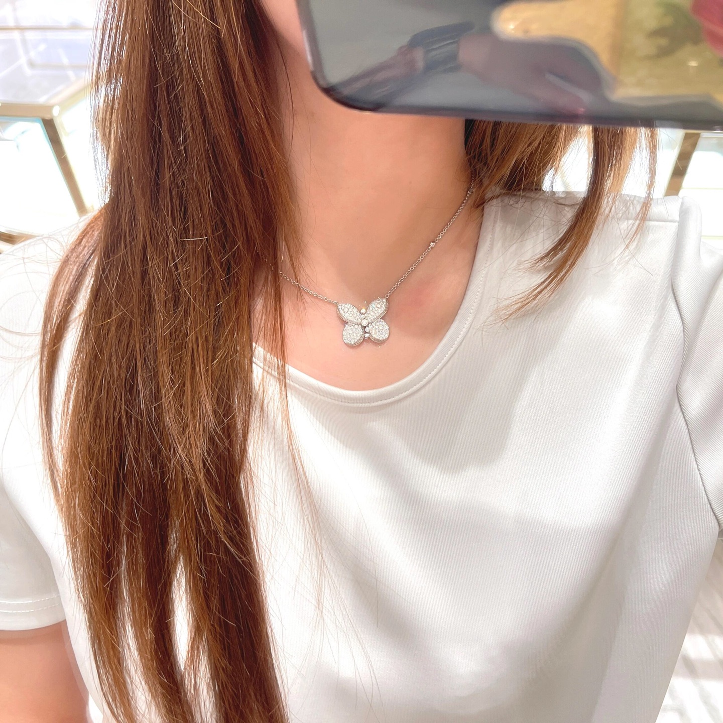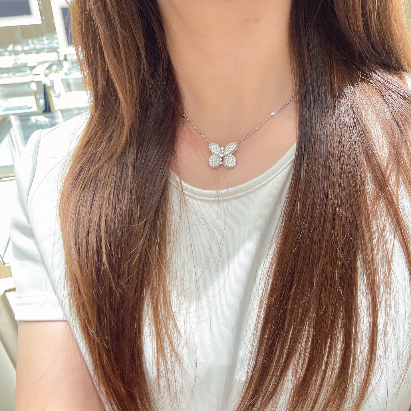 这款首饰是AAAAA 1:1 质量 (非常棒). 使用了和原版一模一样的材料. 商标部分也保持了和GRAFF一样. 图片拍摄是实物首饰拍摄, 您所收到的实物保证和我们图片一模一样.
