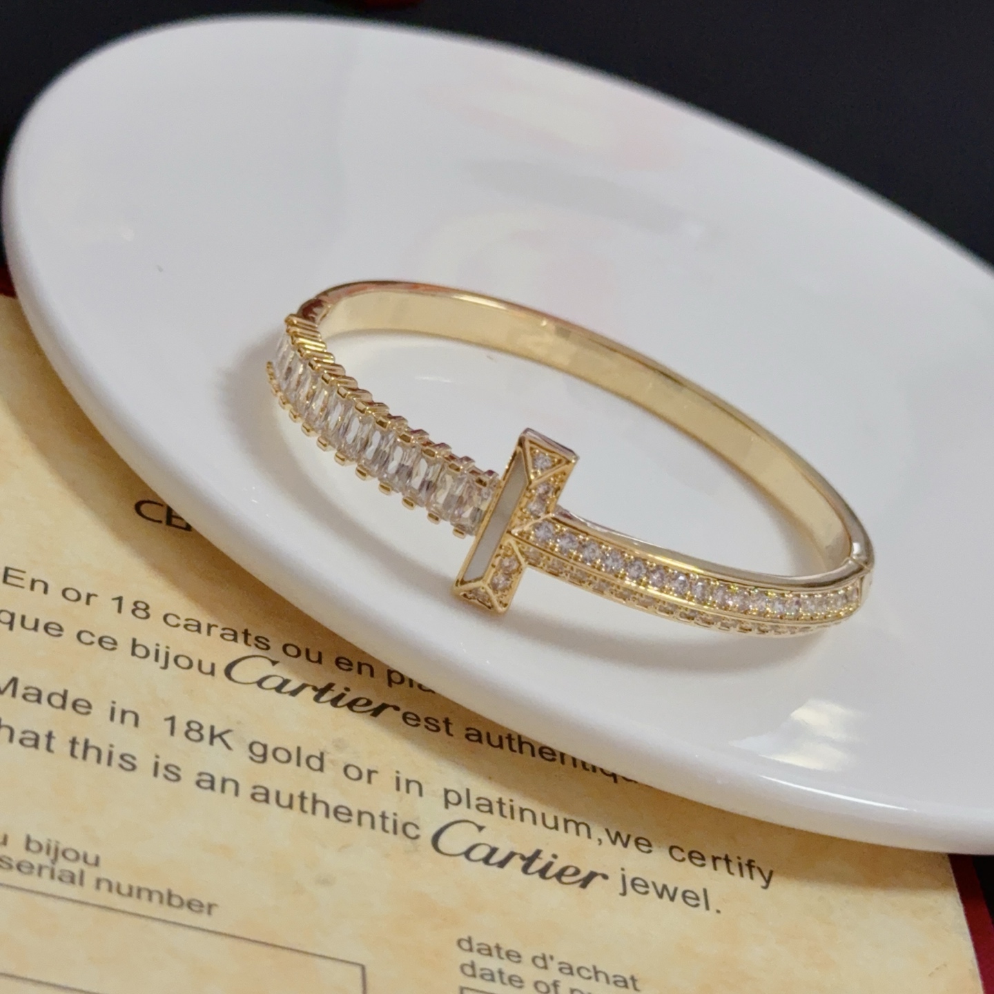 这款首饰是AAAAA 1:1 质量 (非常棒). 使用了和原版一模一样的材料. 商标部分也保持了和卡地亚/Cartier一样. 图片拍摄是实物首饰拍摄, 您所收到的实物保证和我们图片一模一样.