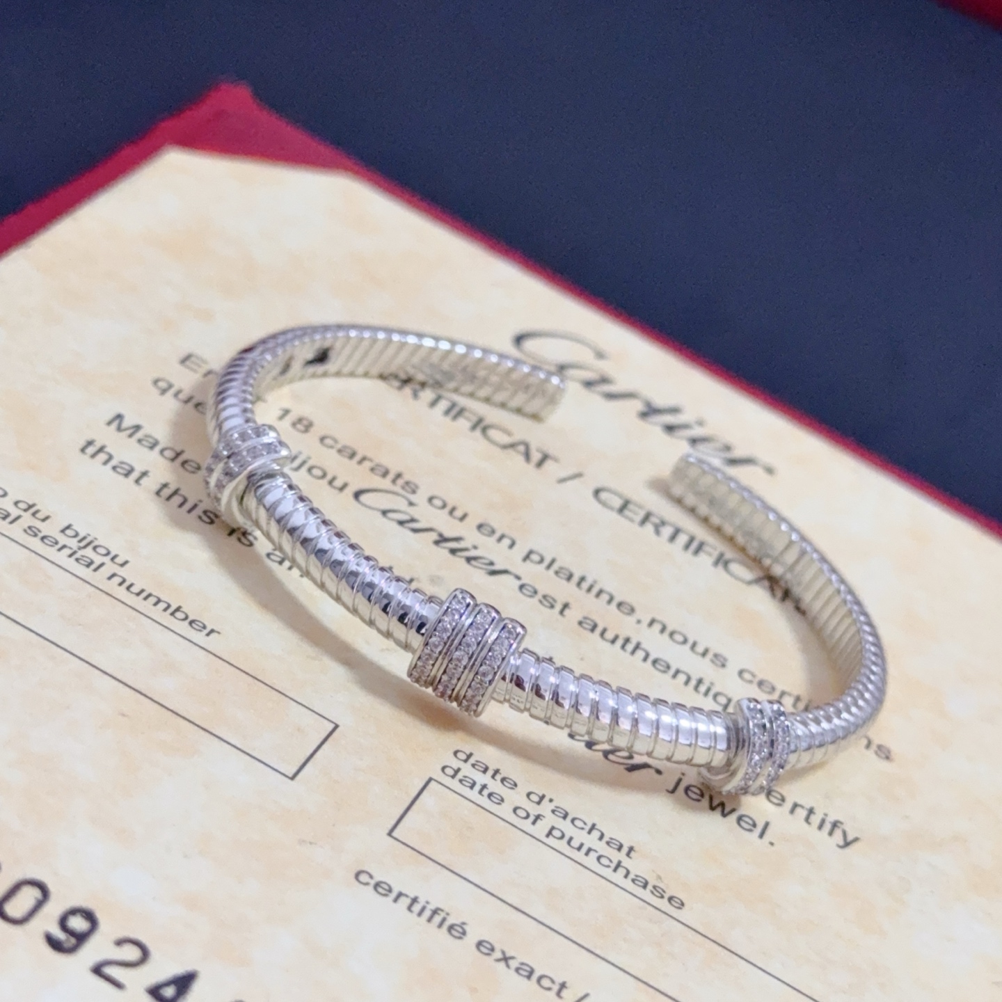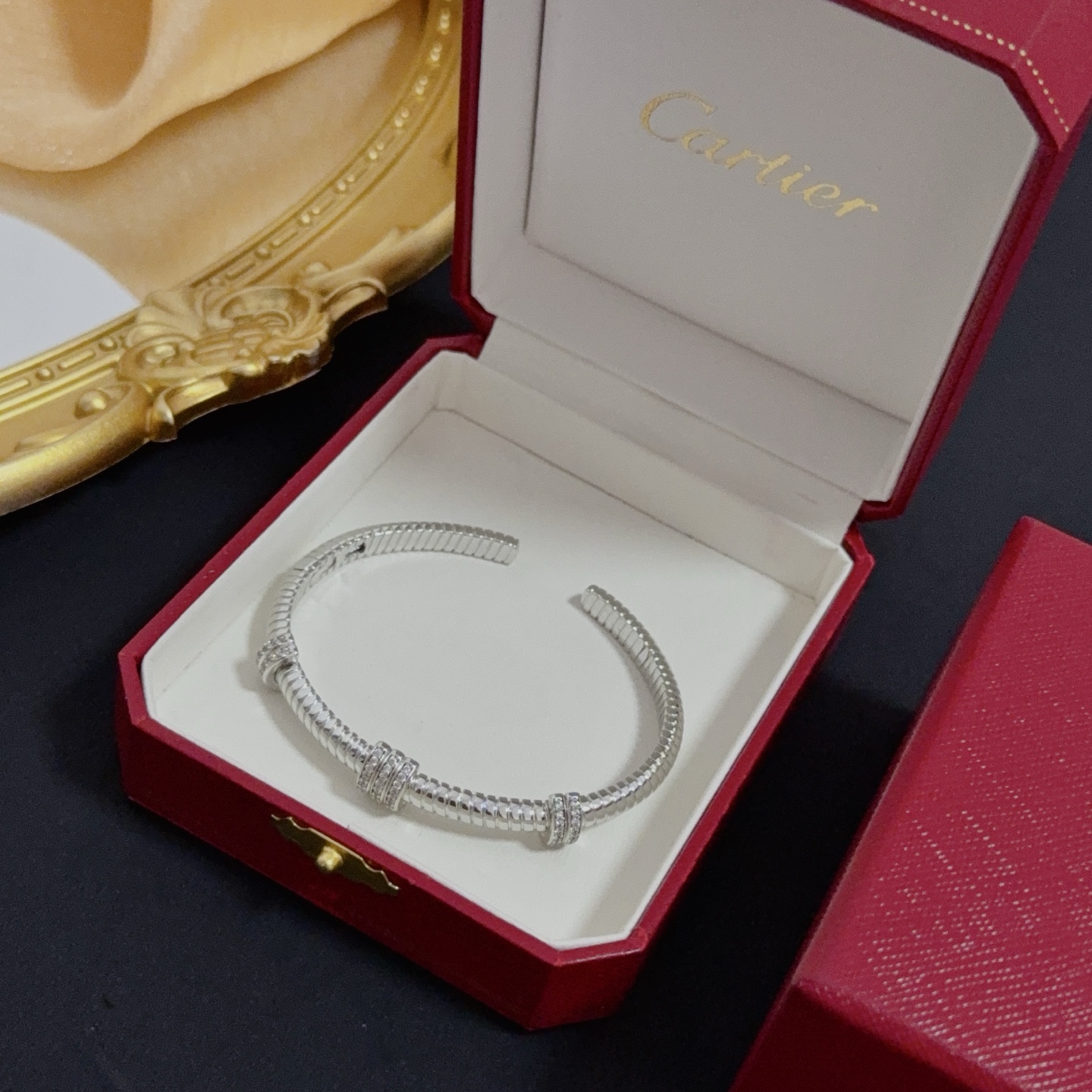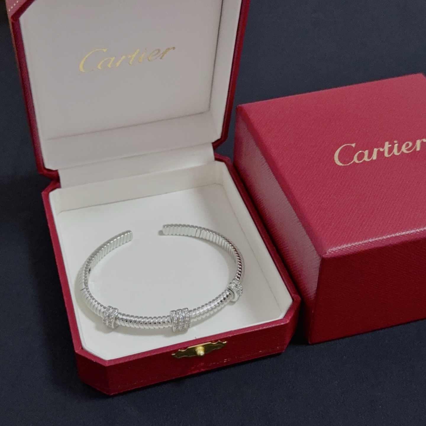 这款首饰是AAAAA 1:1 质量 (非常棒). 使用了和原版一模一样的材料. 商标部分也保持了和卡地亚/Cartier一样. 图片拍摄是实物首饰拍摄, 您所收到的实物保证和我们图片一模一样.