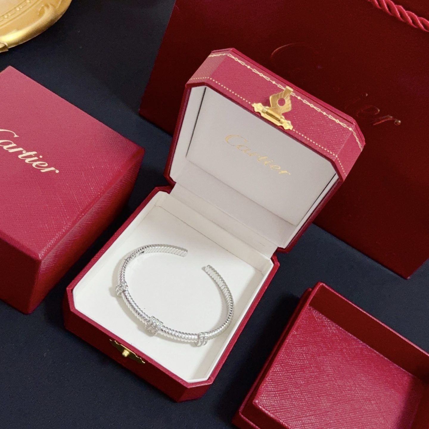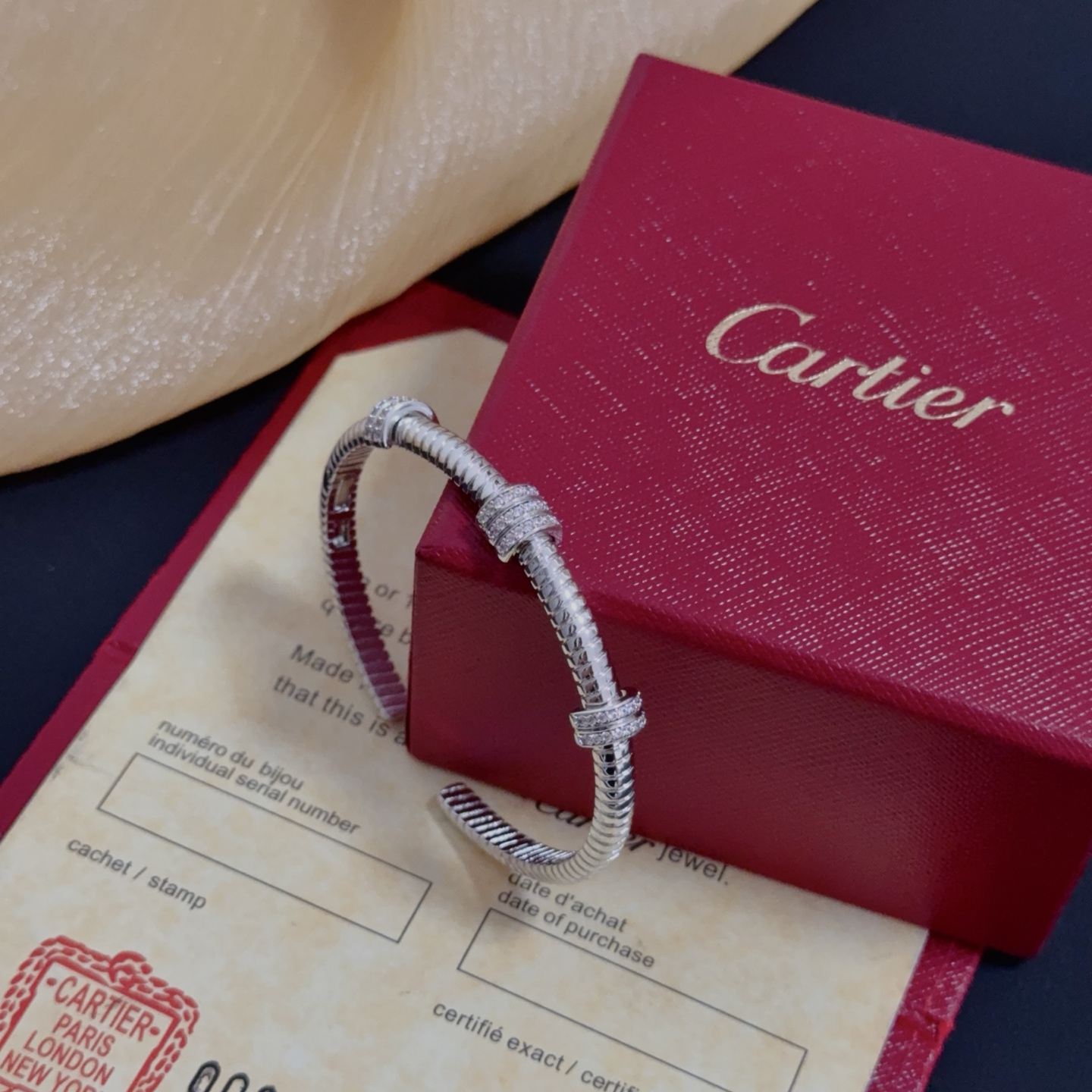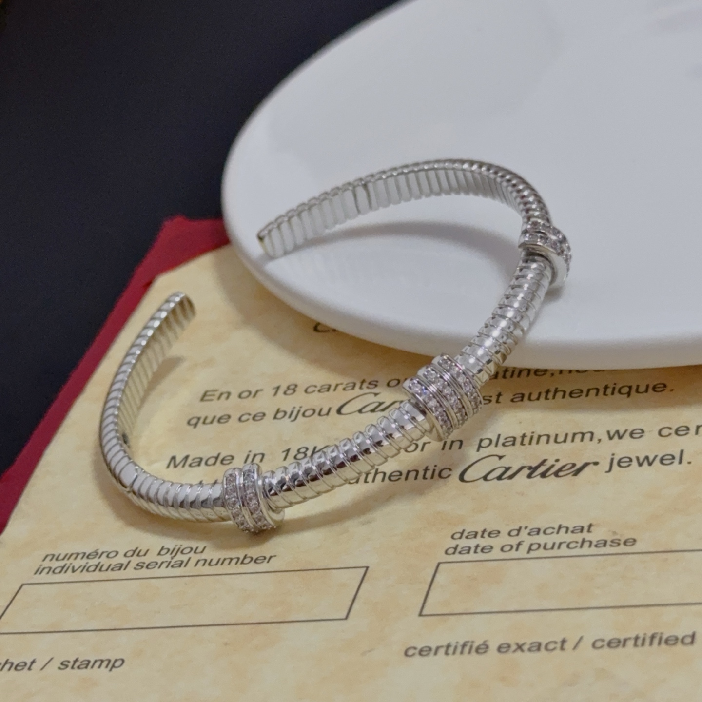 这款首饰是AAAAA 1:1 质量 (非常棒). 使用了和原版一模一样的材料. 商标部分也保持了和卡地亚/Cartier一样. 图片拍摄是实物首饰拍摄, 您所收到的实物保证和我们图片一模一样.