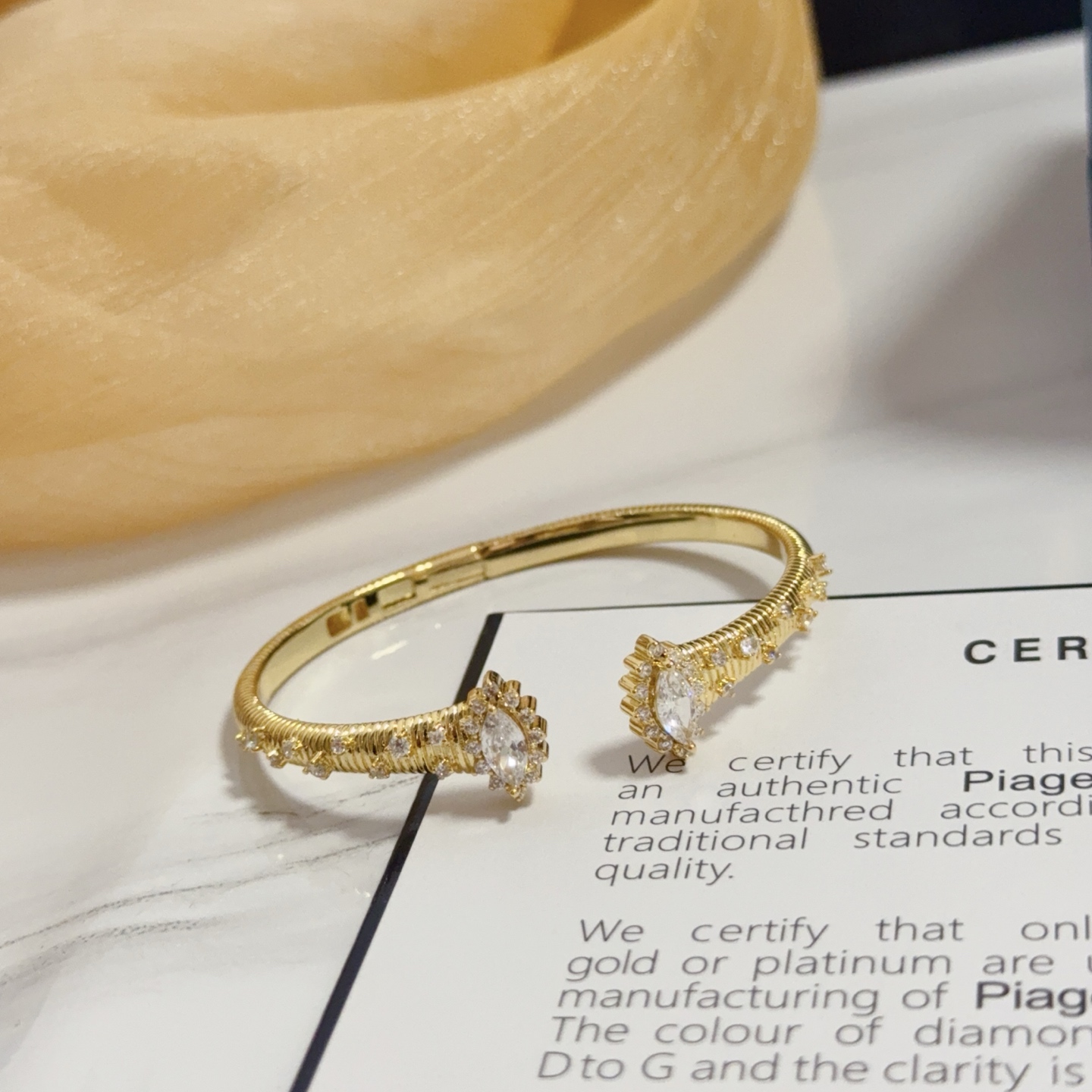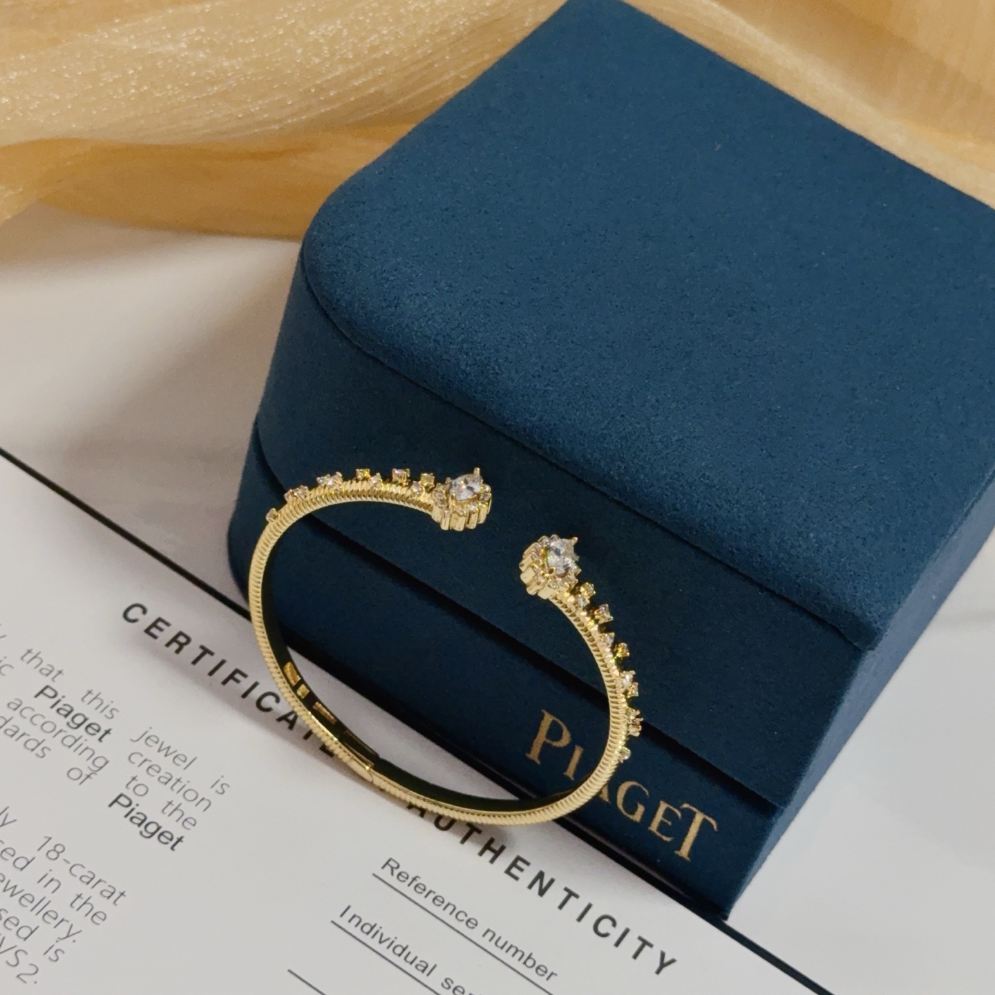 这款首饰是AAAAA 1:1 质量 (非常棒). 使用了和原版一模一样的材料. 商标部分也保持了和伯爵/Piaget一样. 图片拍摄是实物首饰拍摄, 您所收到的实物保证和我们图片一模一样.