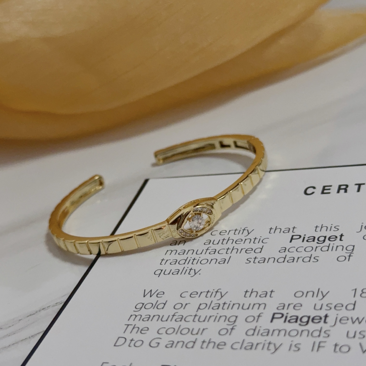 这款首饰是AAAAA 1:1 质量 (非常棒). 使用了和原版一模一样的材料. 商标部分也保持了和伯爵/Piaget一样. 图片拍摄是实物首饰拍摄, 您所收到的实物保证和我们图片一模一样.