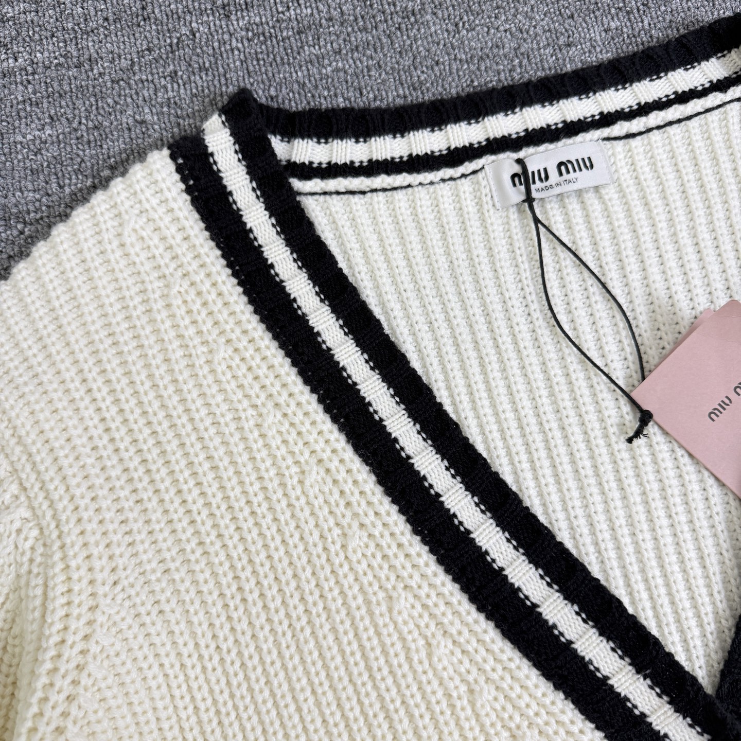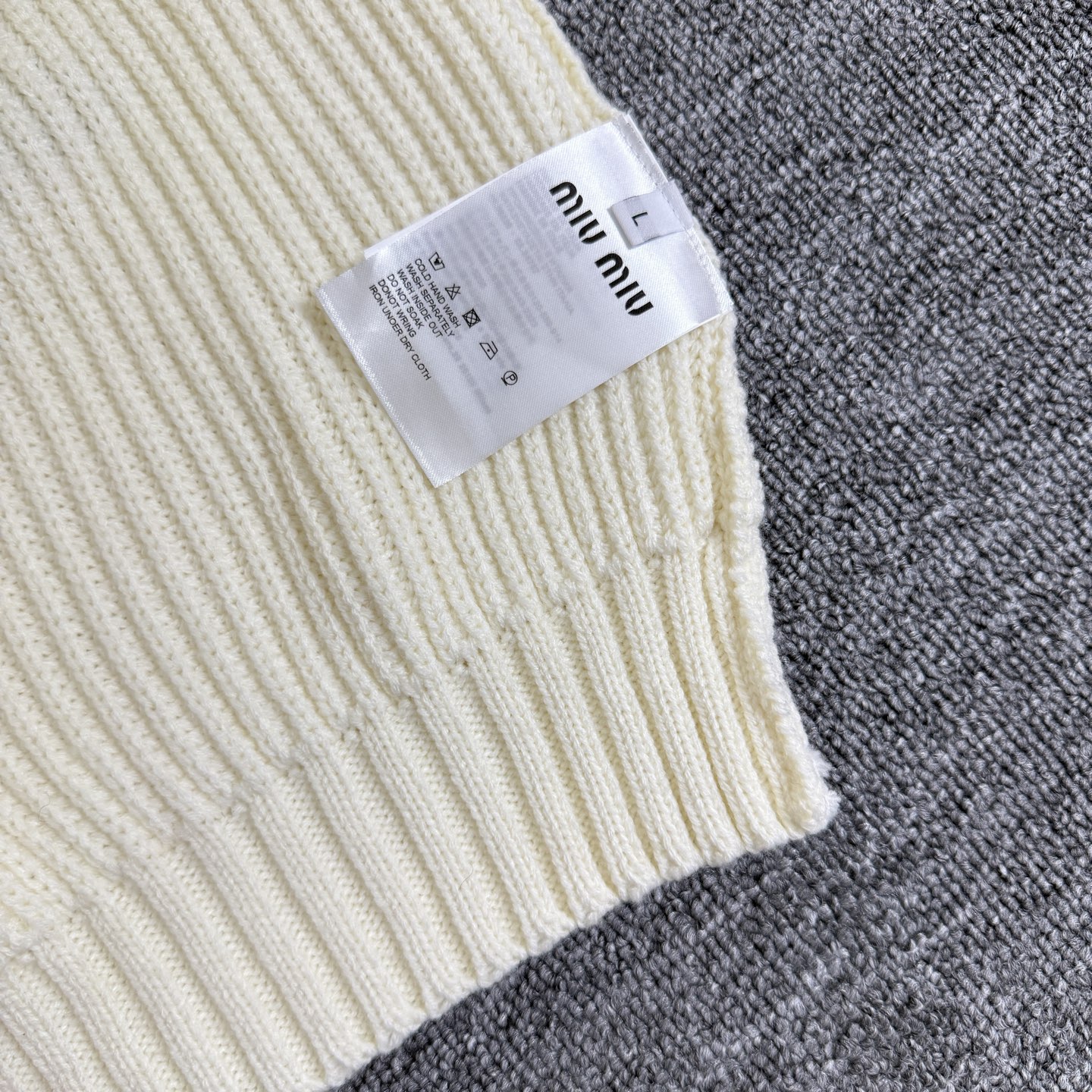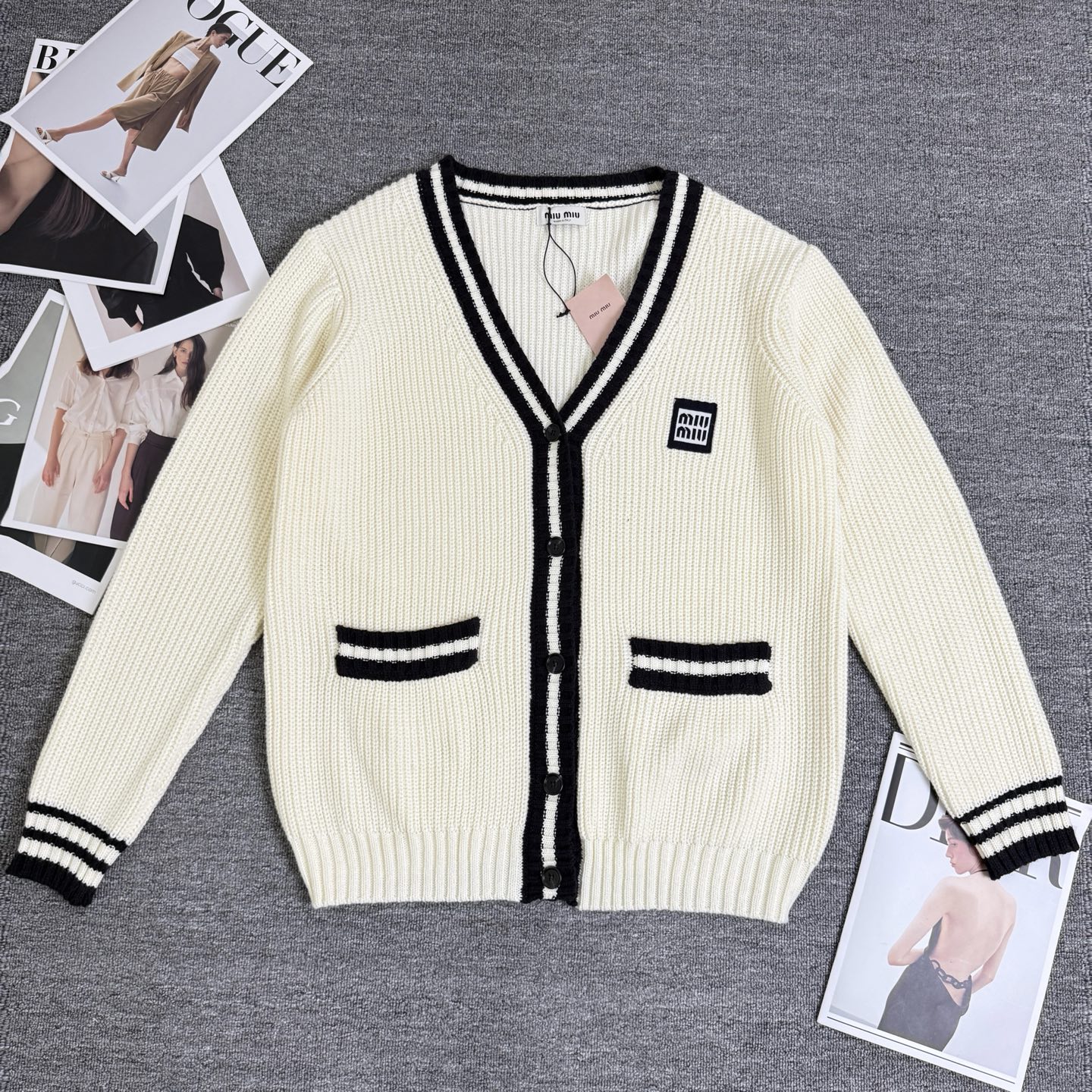 这款衣服是AAAAA 1:1 质量 (非常棒). 使用了和原版一模一样的材料. 商标部分也保持了和缪缪/Miu Miu一样. 图片拍摄是实物衣服拍摄, 您所收到的实物保证和我们图片一模一样.