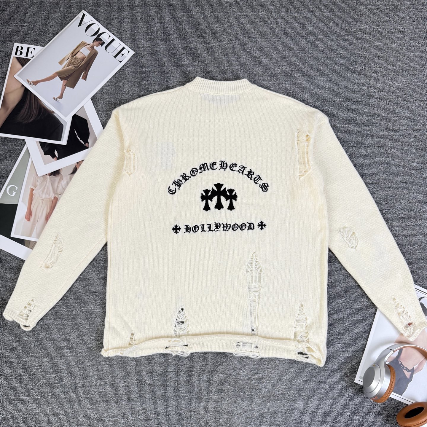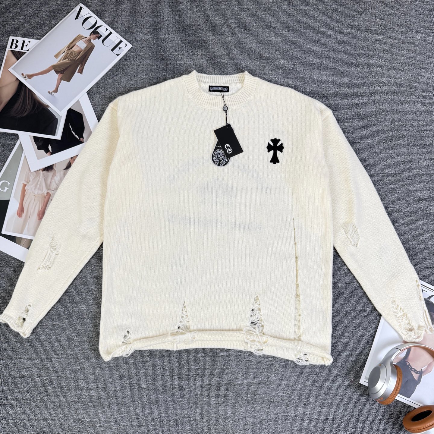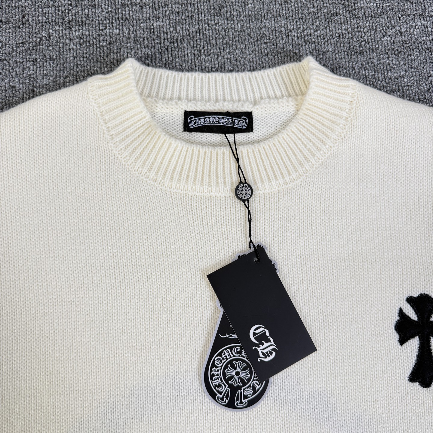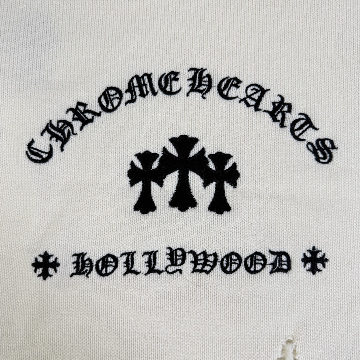 这款衣服是AAAAA 1:1 质量 (非常棒). 使用了和原版一模一样的材料. 商标部分也保持了和克罗心/Chrome Hearts一样. 图片拍摄是实物衣服拍摄, 您所收到的实物保证和我们图片一模一样.