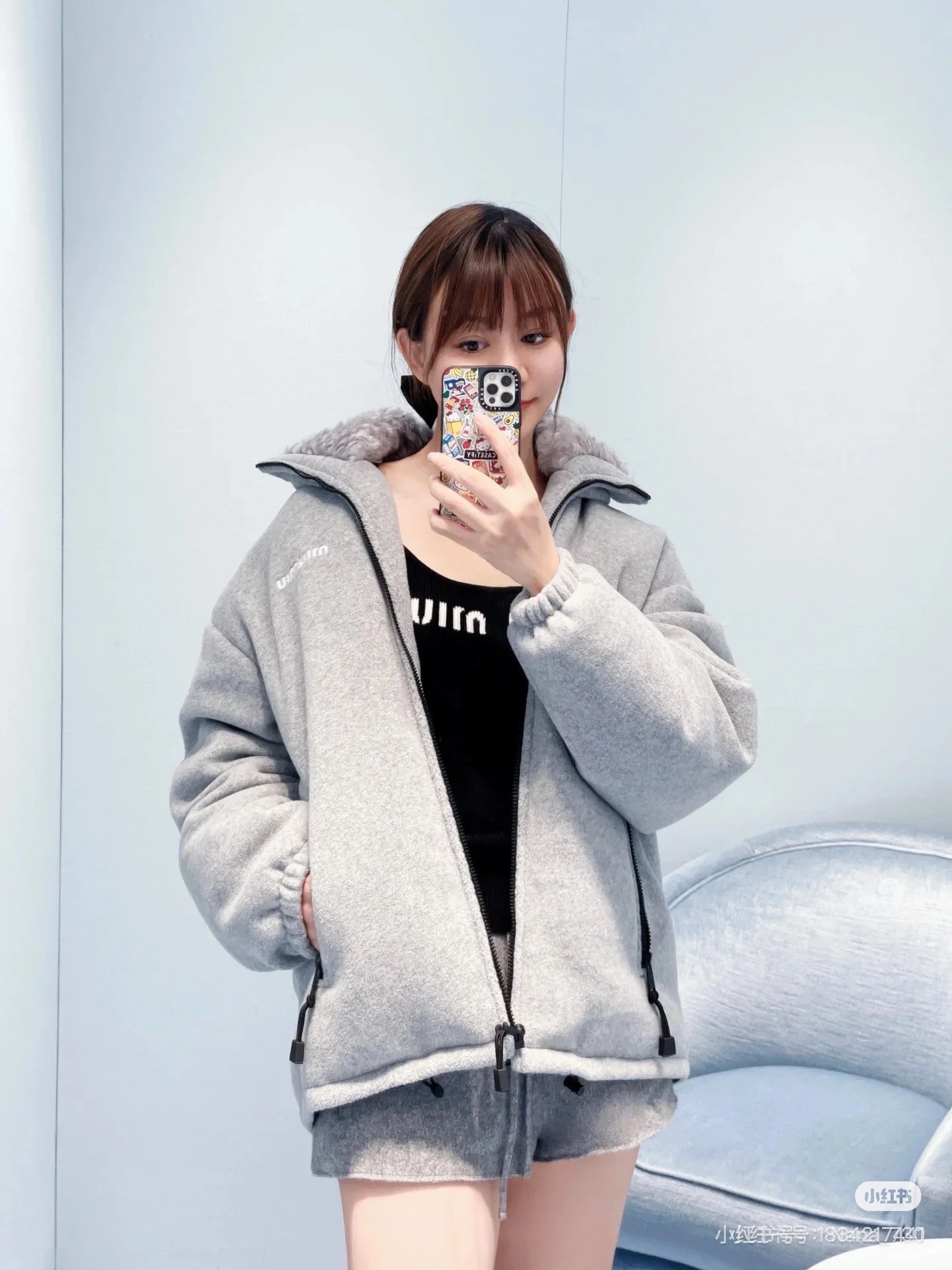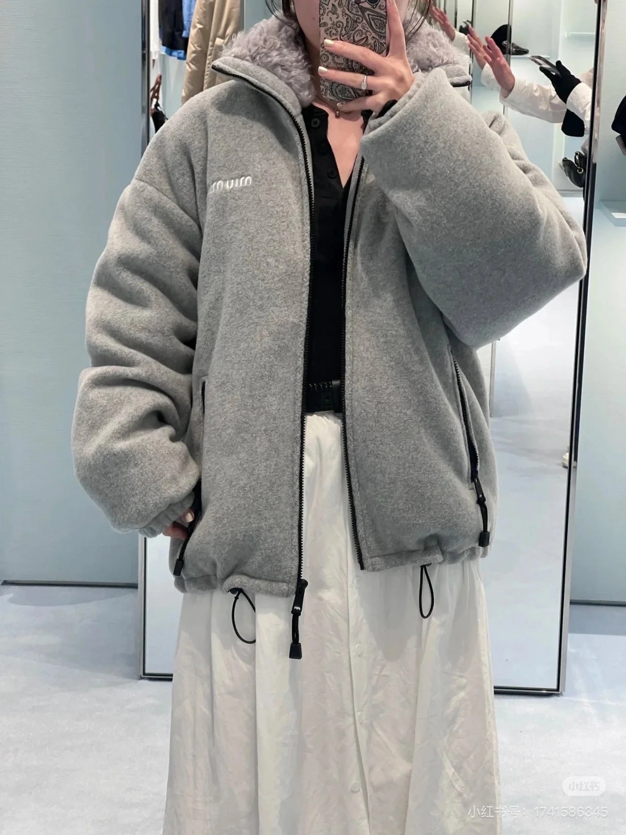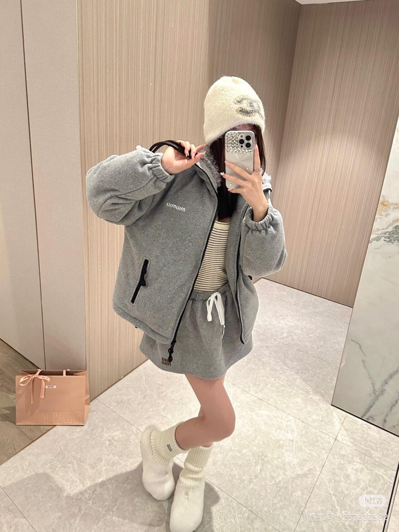 这款衣服是AAAAA 1:1 质量 (非常棒). 使用了和原版一模一样的材料. 商标部分也保持了和缪缪/Miu Miu一样. 图片拍摄是实物衣服拍摄, 您所收到的实物保证和我们图片一模一样.